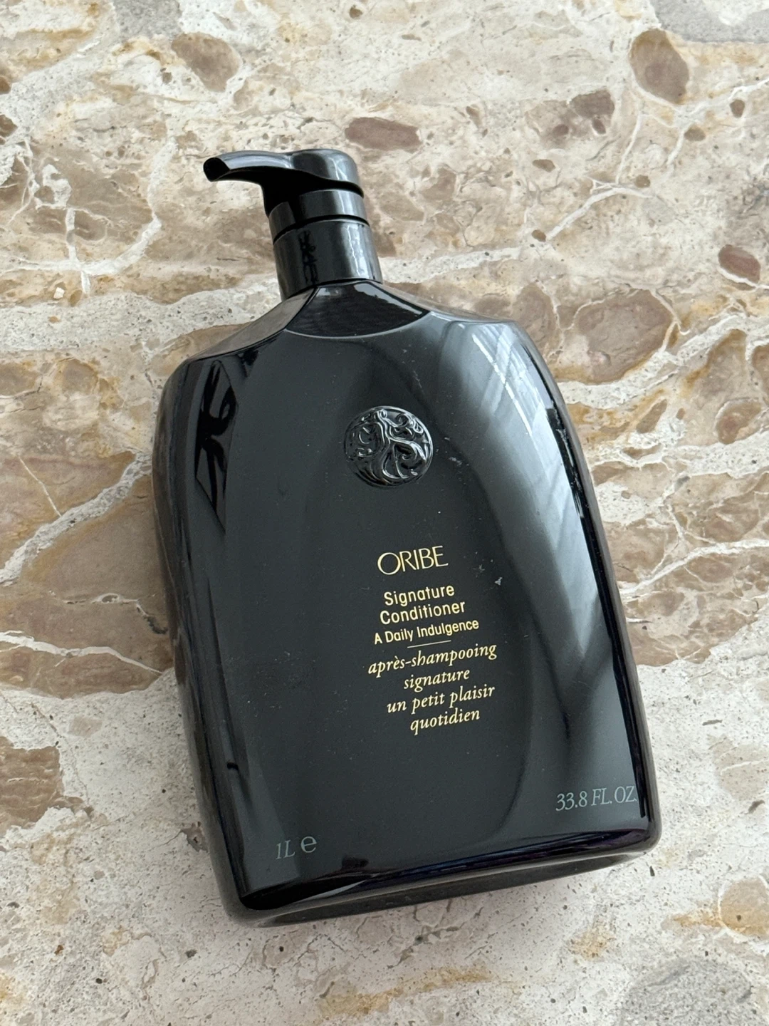Selling a bottle of Oribe Signature Conditioner, a daily indulgence for your hair. It's the 33.8 fl oz size. This conditioner is designed to provide a luxurious and effective conditioning experience, leaving your hair feeling soft and healthy