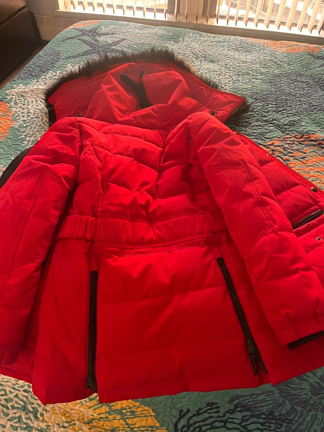 Selling a vibrant red Guess puffer jacket! It's like new and super warm for the Canadian winter. Perfect for adding a pop of colour to your wardrobe
