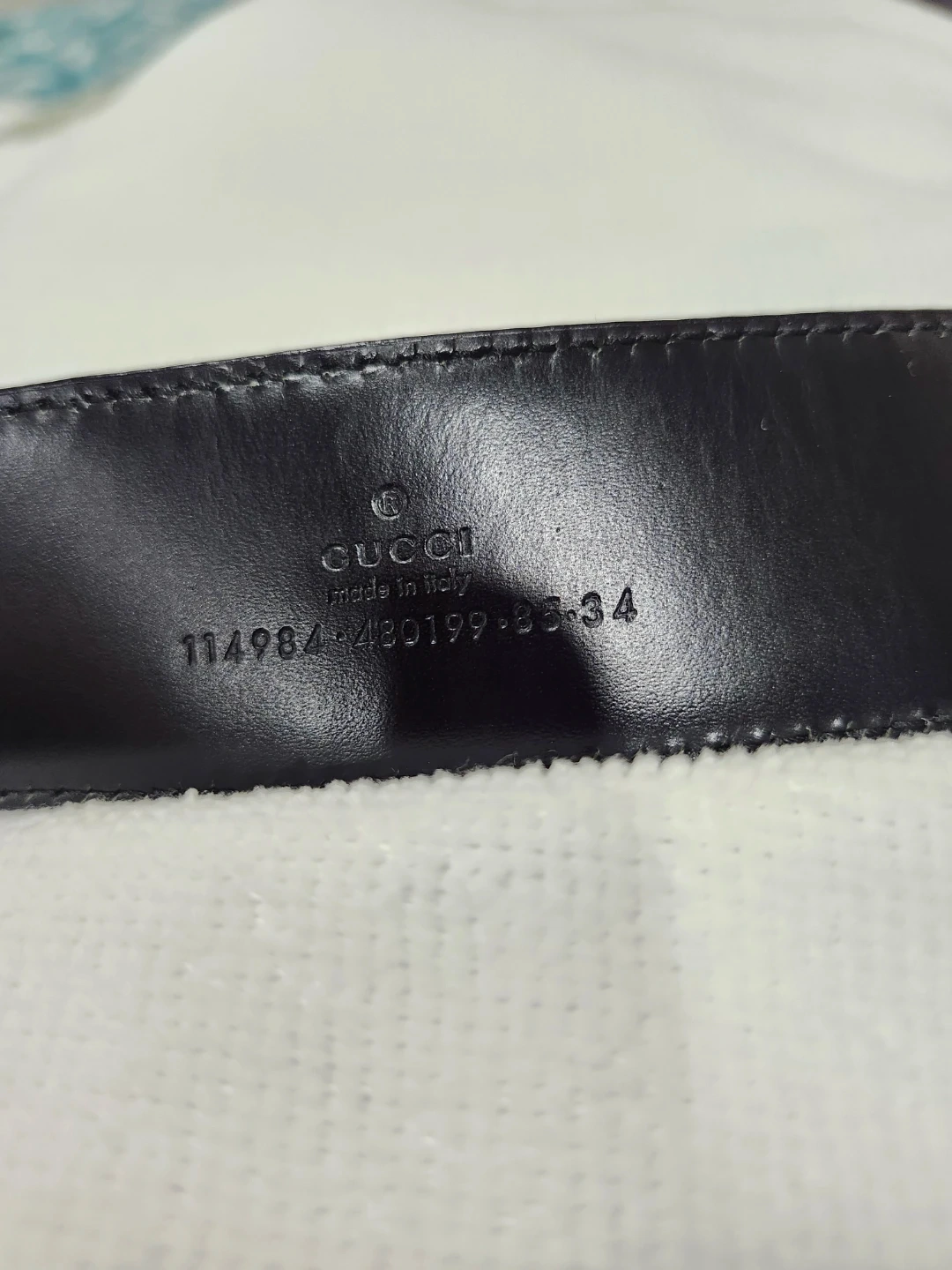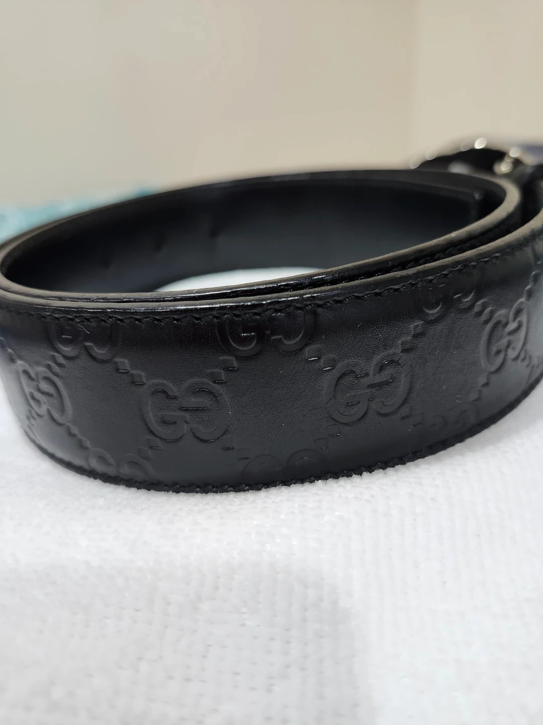 This is a classic Gucci belt in black leather. It features the iconic GG logo buckle and subtle GG pattern embossed on the leather strap. The belt is in great condition and ready to add a touch of luxury to your wardrobe!