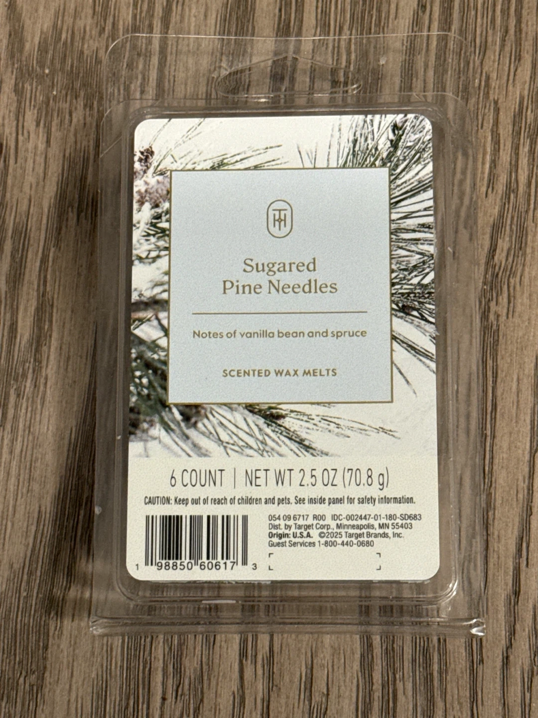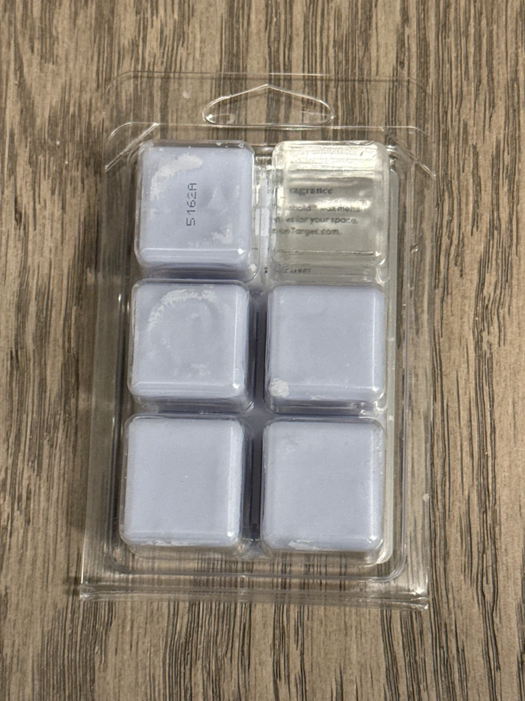 It has notes of vanilla bean and spruce. There were 6 wax melts in the pack, with a net weight of 2.5 oz (70.8 g).