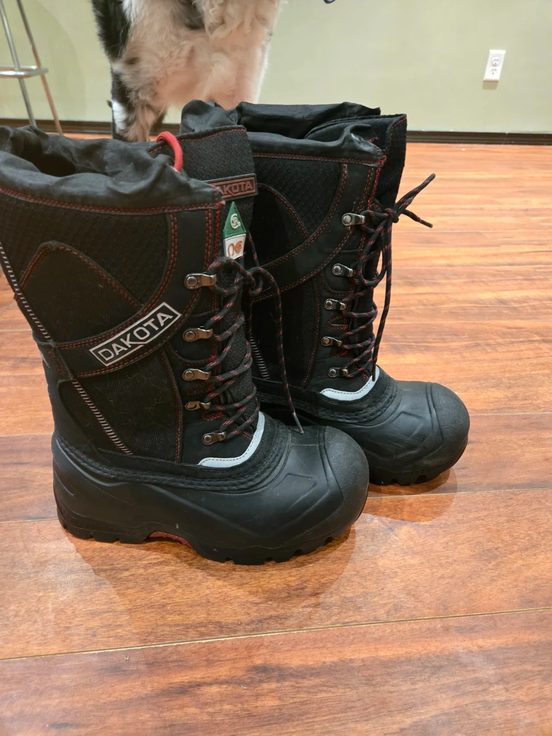 Selling a pair of Dakota women's winter boots in size 7. They are black with red accents and feature a lace-up design. Perfect for keeping your feet warm and dry during the winter months!