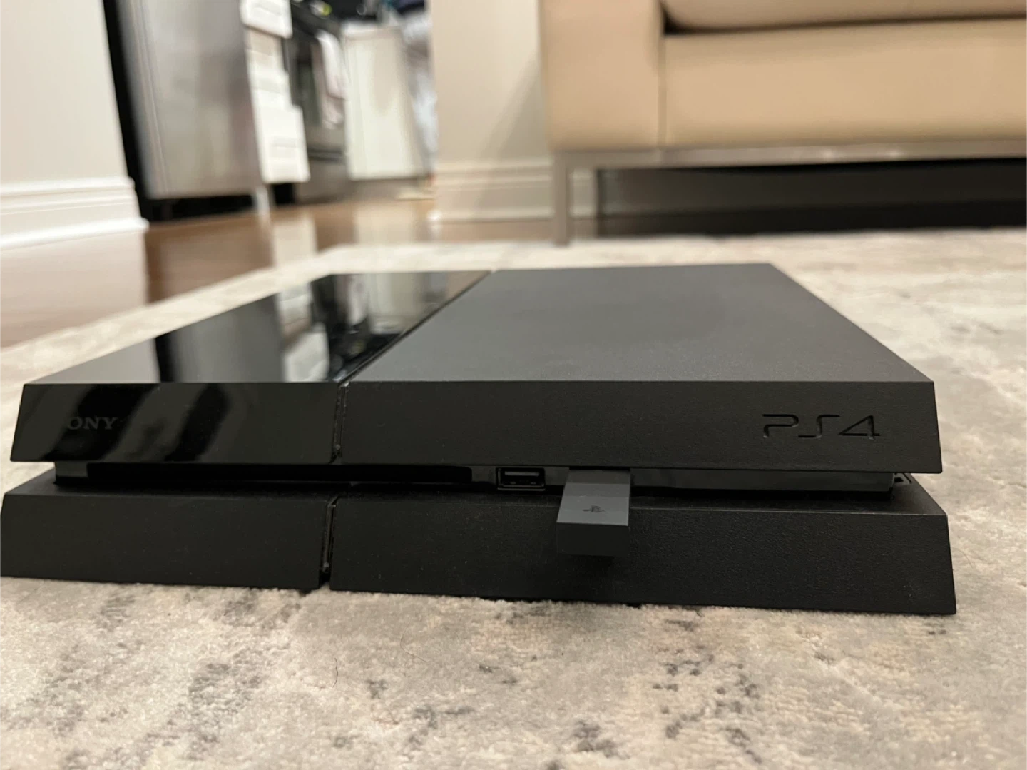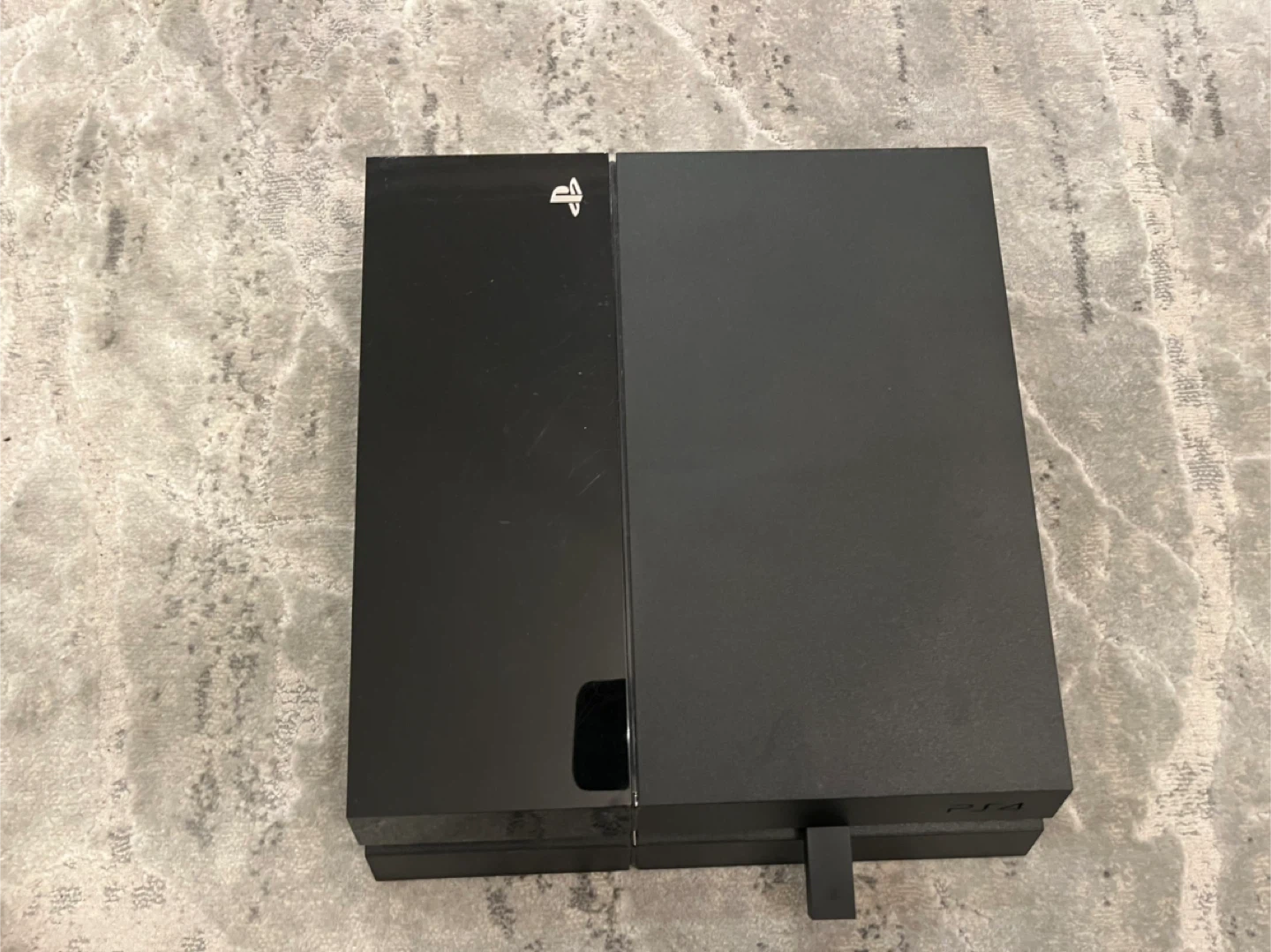 Selling a PlayStation 4 console in black. It comes with two controllers and a charging cable. Perfect for gaming! This PS4 is brand new barely used. No issues at all.