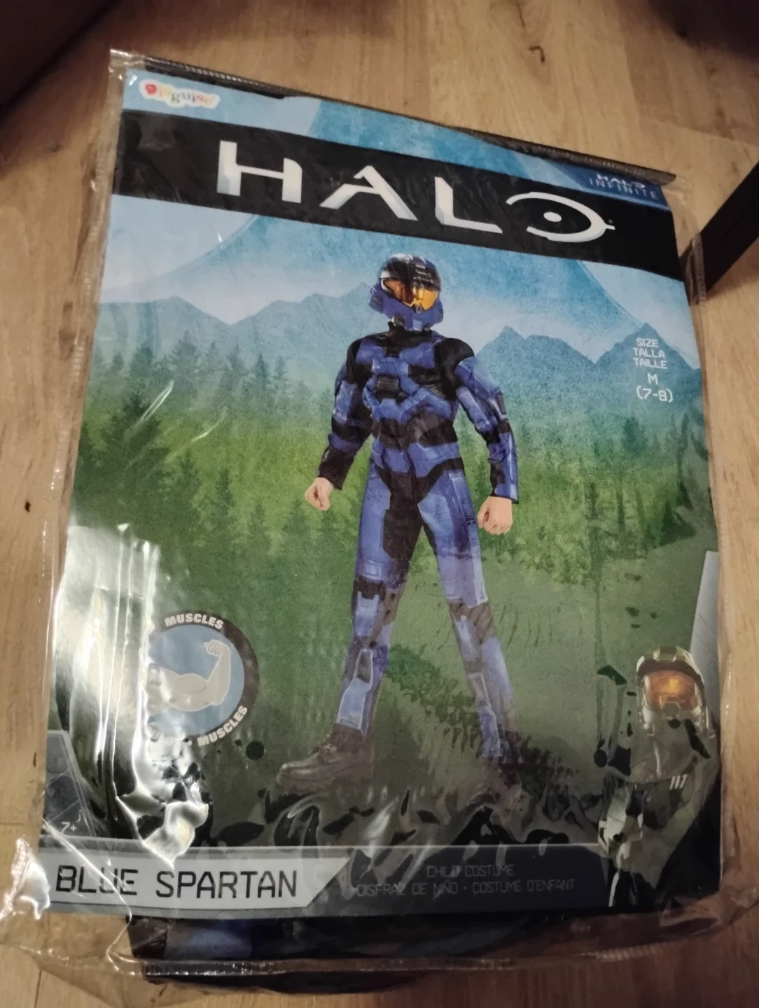 152Selling a Halo Blue Spartan costume for kids! It's a size medium (7-8). Great for dress-up or Halloween!