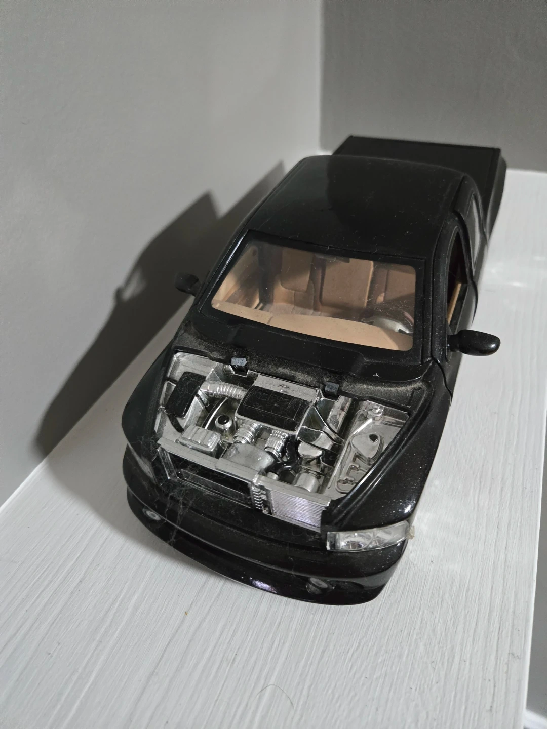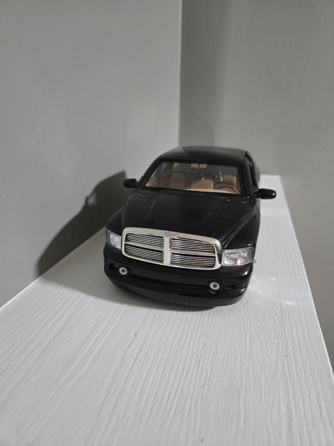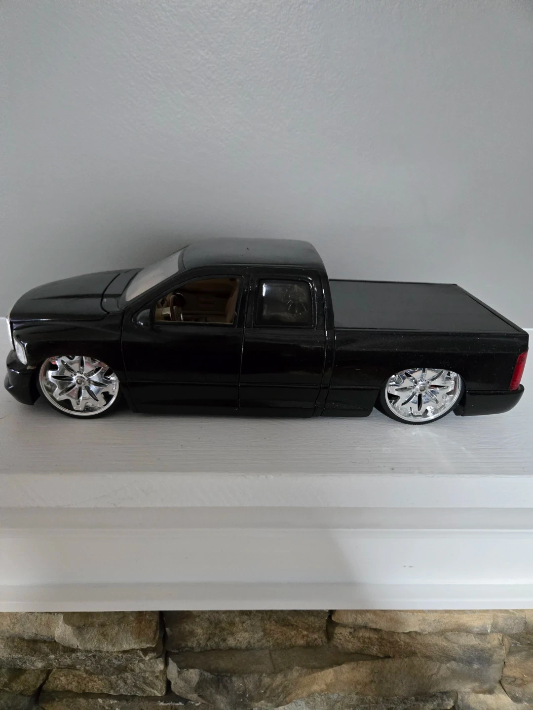 Selling a DUB black Dodge Ram truck model. It's a detailed replica with a custom look, featuring the DUB logo and a modified engine bay. Great for collectors or as a display piece! Hood is broken off but will come with. Price will reflect this.