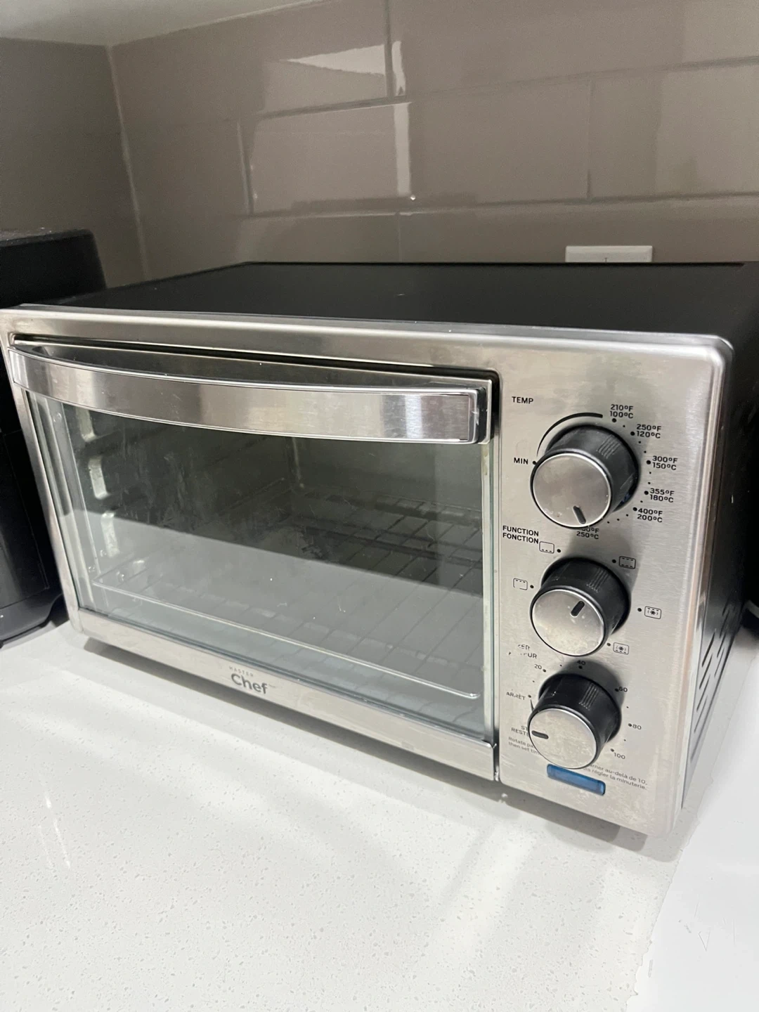 Selling a Master Chef toaster oven! It's in good condition and ready for a new home. Perfect for small kitchens or anyone who wants a convenient way to toast or bake smaller meals