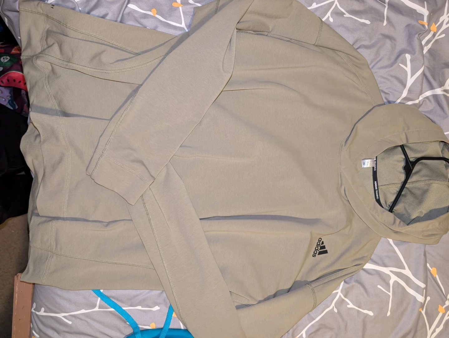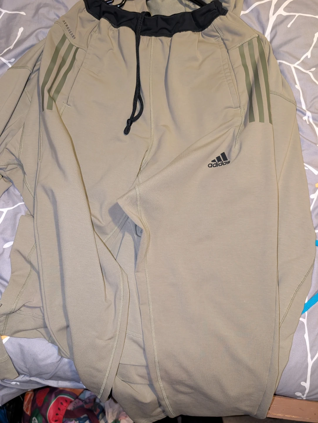 Selling an Adidas Primegreen training set. The hoodie is XL and pants are size M. The set is in great condition.