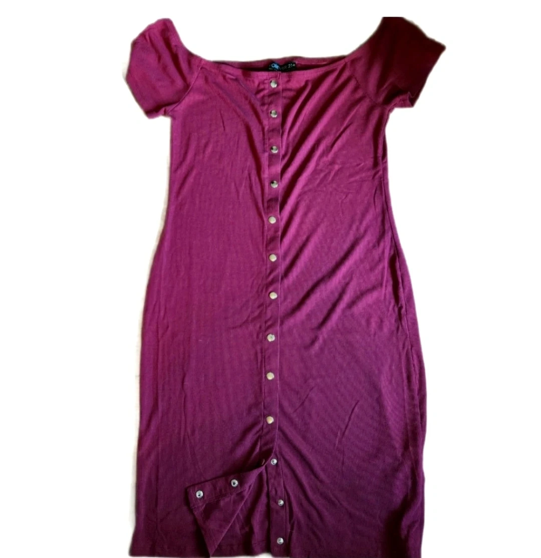 Selling a Forever 21+ burgundy dress in size 3X. It's made of 62% polyester, 33% rayon, and 5% spandex/elastane. The dress features button detailing and an off-the-shoulder style. Perfect for a casual or dressed-up look!