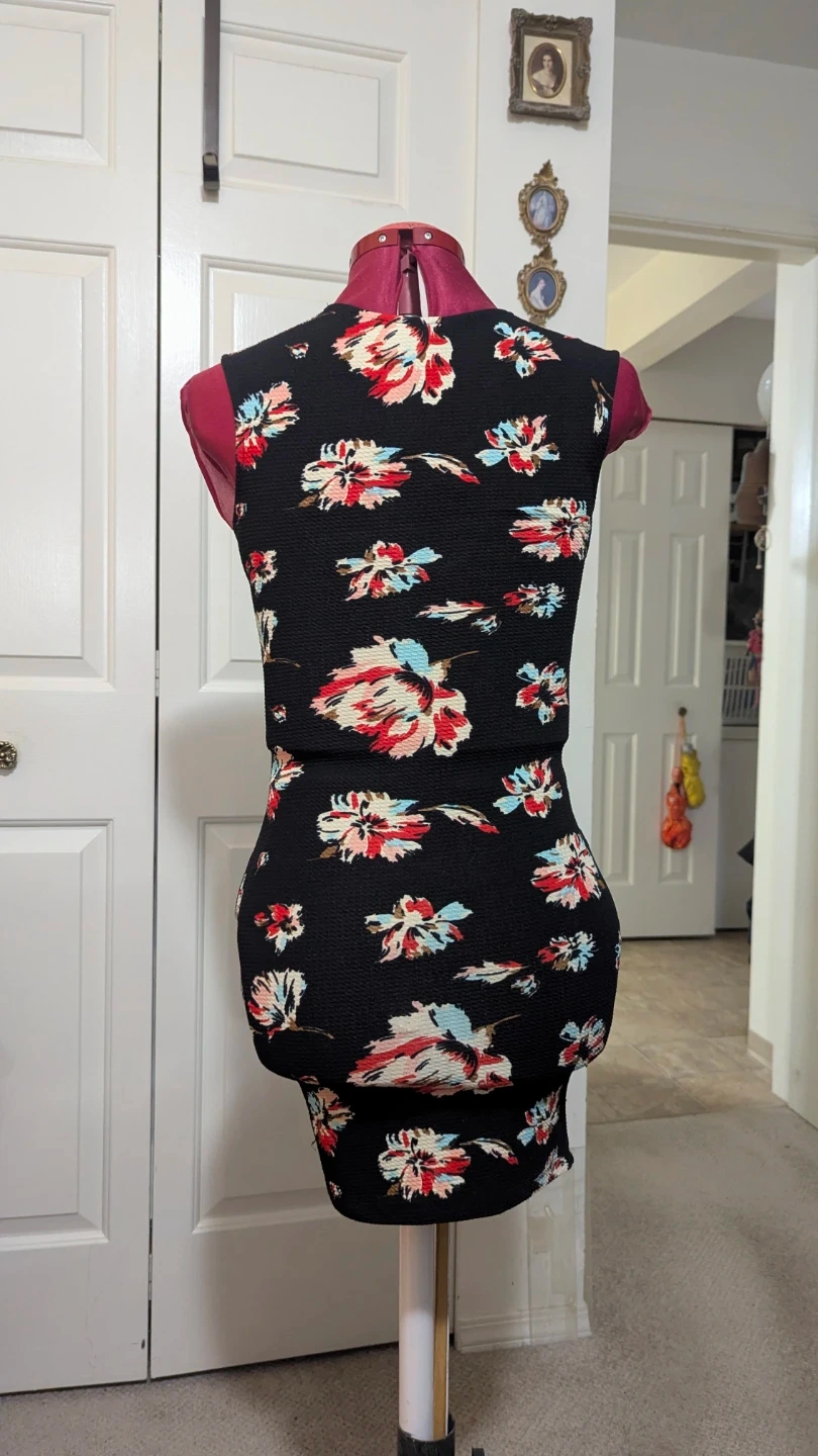 A lovely black dress with a colourful floral print! It's in great condition and ready for a new home. Perfect for a night out or a special occasion.