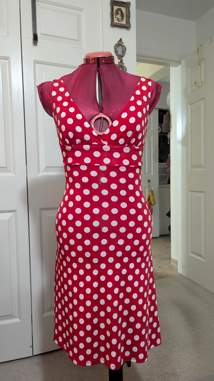 Cute red dress with white polka dots! It's in great condition and ready for a new home. Perfect for adding a pop of colour to your wardrobe!