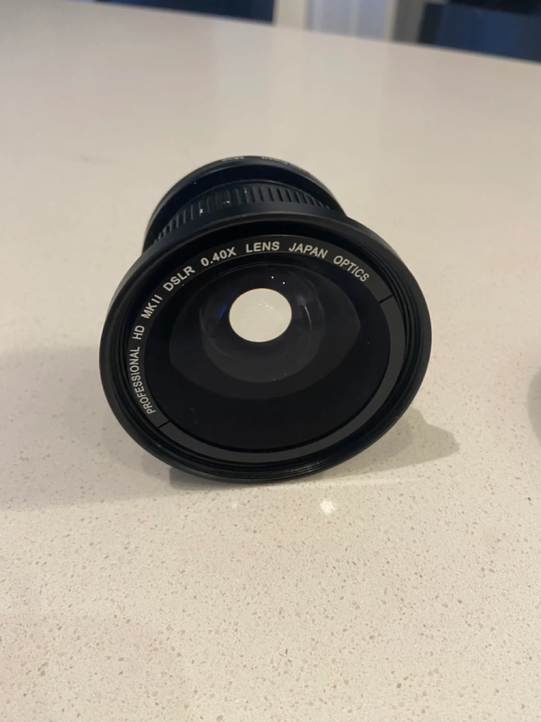 Selling a Zeikos Professional HD MKII DSLR 0.40X Lens. It's in great condition and ready to use! It says 'Lens Japan Optics' on the front and 'Macro 58mm DMC Lens Protect' on the side.