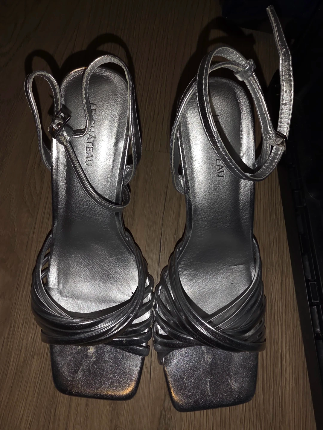 Selling a pair of Le Chateau silver heels in