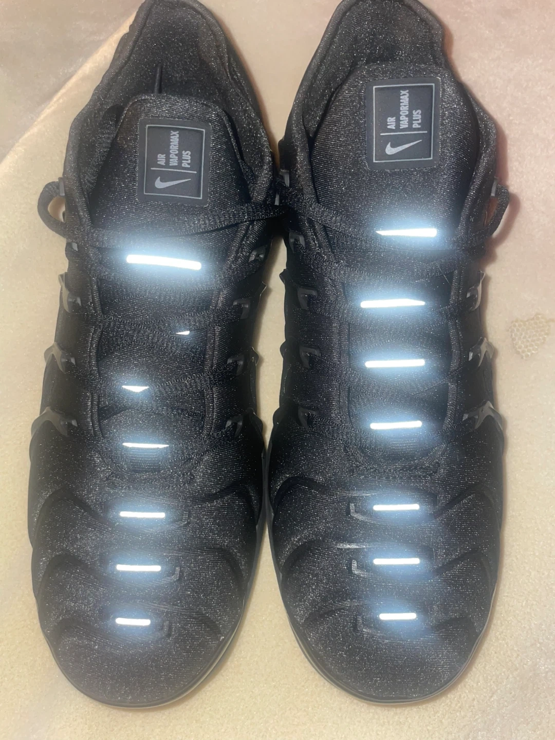 Selling a pair of Nike Air VaporMax Plus in black. They're in great condition not worn Comes with Box Size 9.5 Looking to sell Willing to look for offers