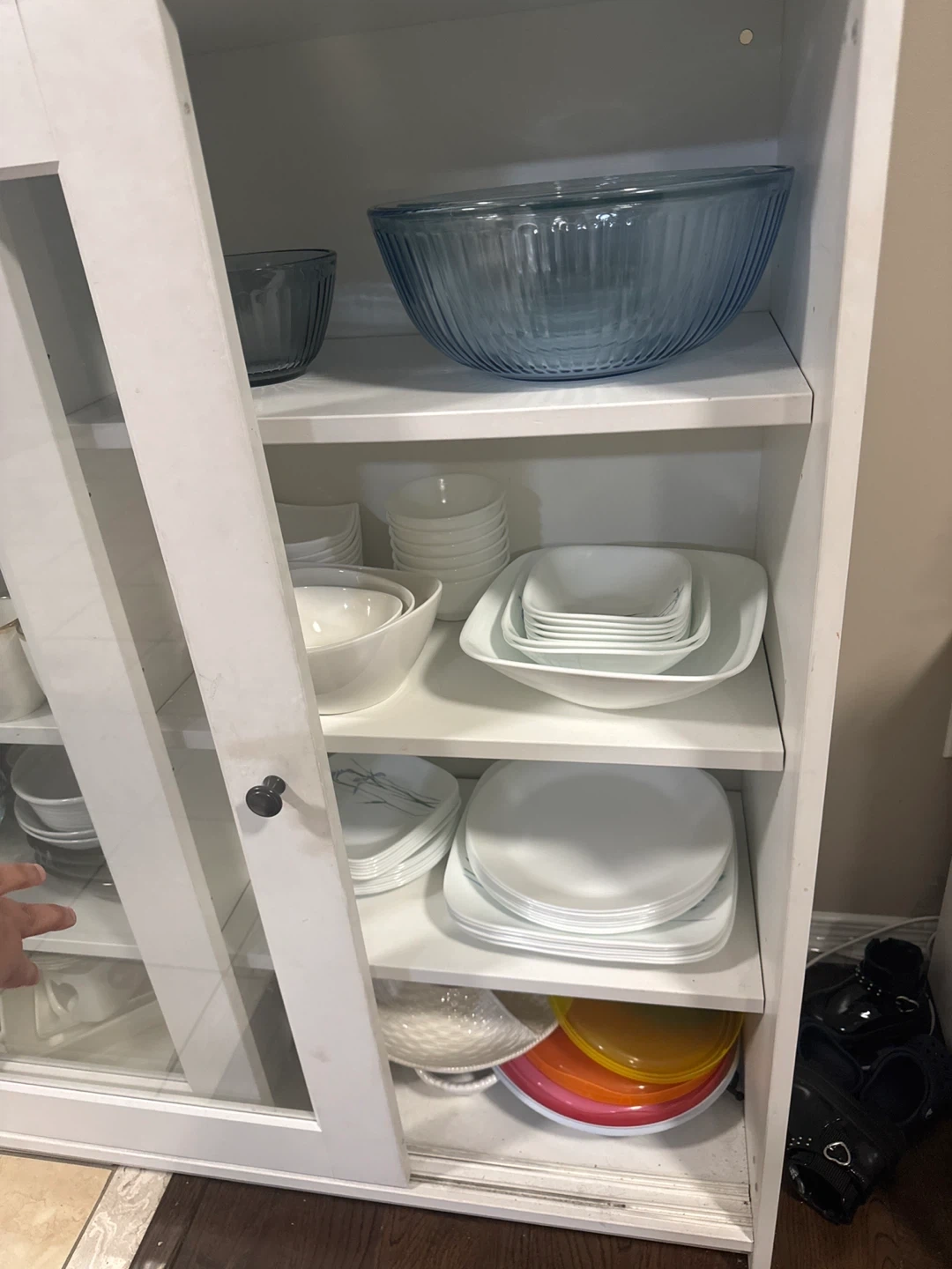 Selling a white display cabinet with glass doors! It's perfect for storing and displaying your dishes, glassware, or other collectibles. It's in great condition and ready for a new home