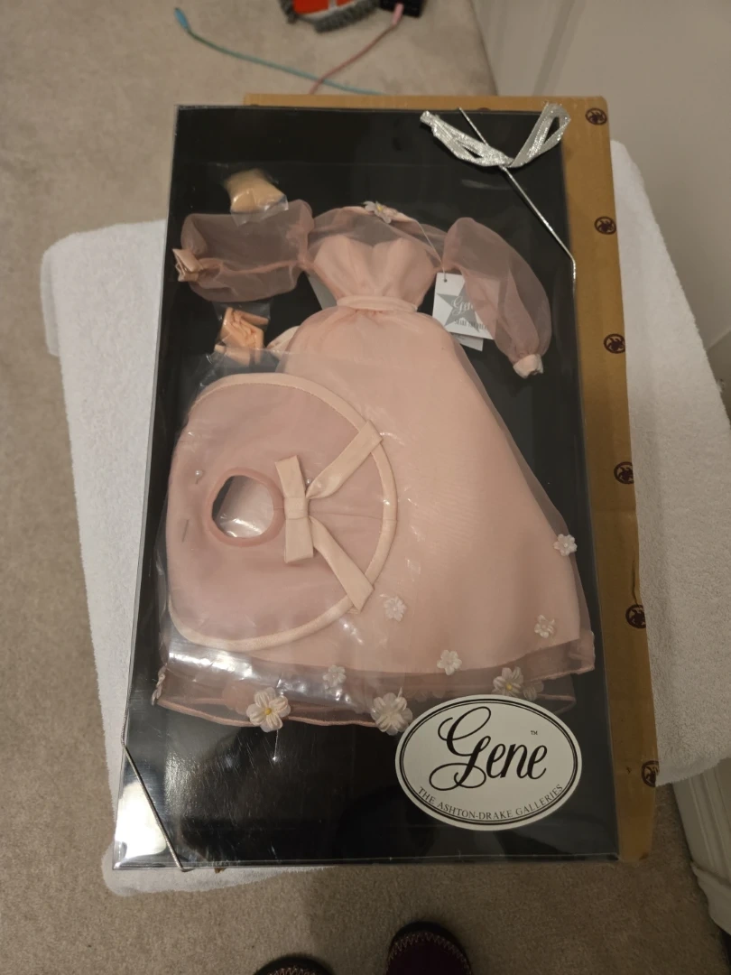 Selling doll clothing. This is for dolls from Gene:The Ashton-Drake Galleries.It's called "On the Veranda." It's still new in its original packaging! It comes with all the original components and accessories as shown in the pictures: hat, dress, and shoes.