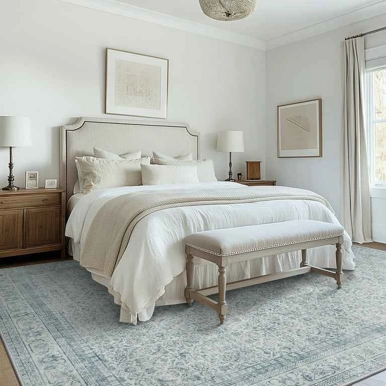 30FRESH DROP β¨ Washable 5x7 Rug This rug is trending for being both practical and luxe looking β soft underfoot, machine washable, and styled like designer dΓ©cor without the price tag. Much lighter and more light Grey in person. βοΈ Easy care β toss in the wash βοΈ Vintage aesthetic in calming blue tones βοΈ Perfect for bedrooms, living rooms, or entryways Check out my other ads βοΈ Follow LUNEA on Marketplace, TikTok, and Instagram @luneawinnipeg for more aesthetic finds.