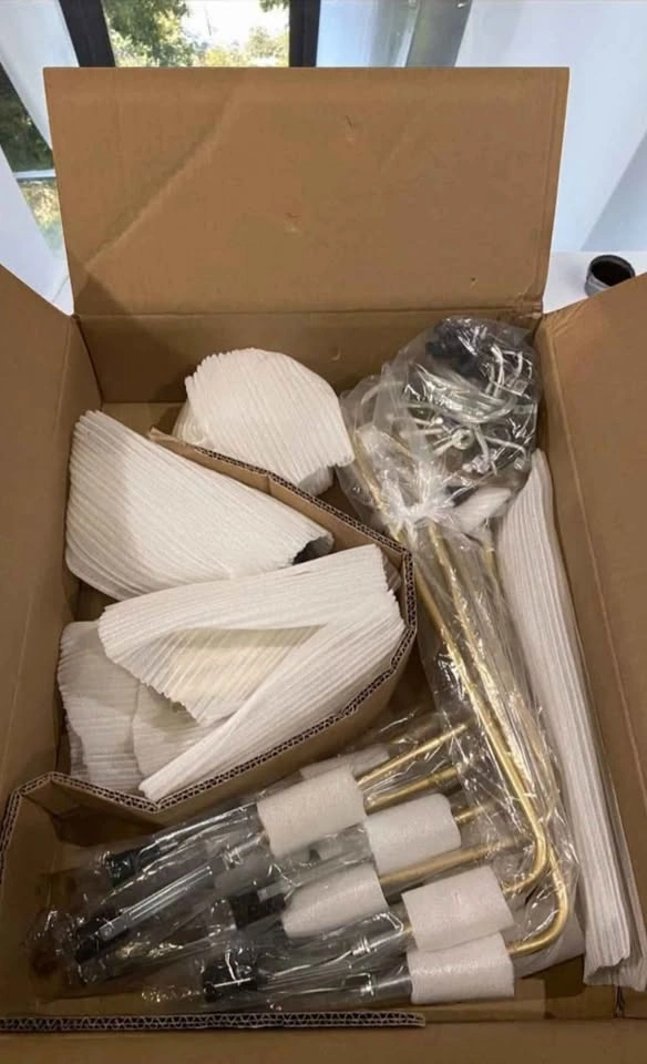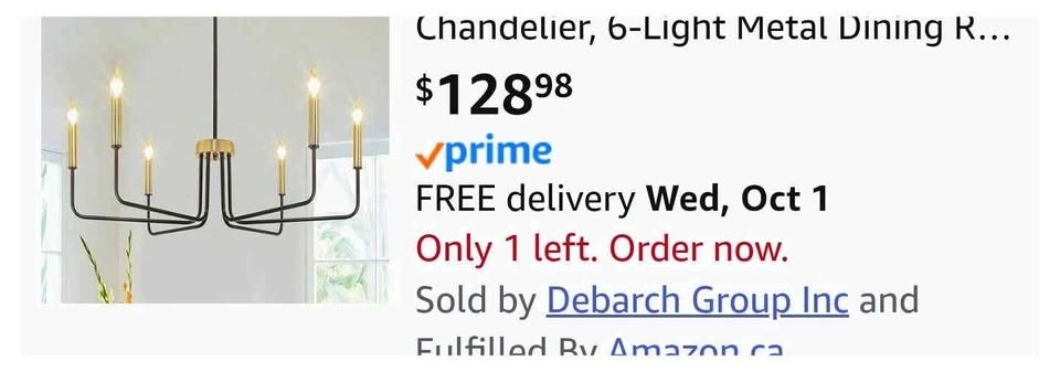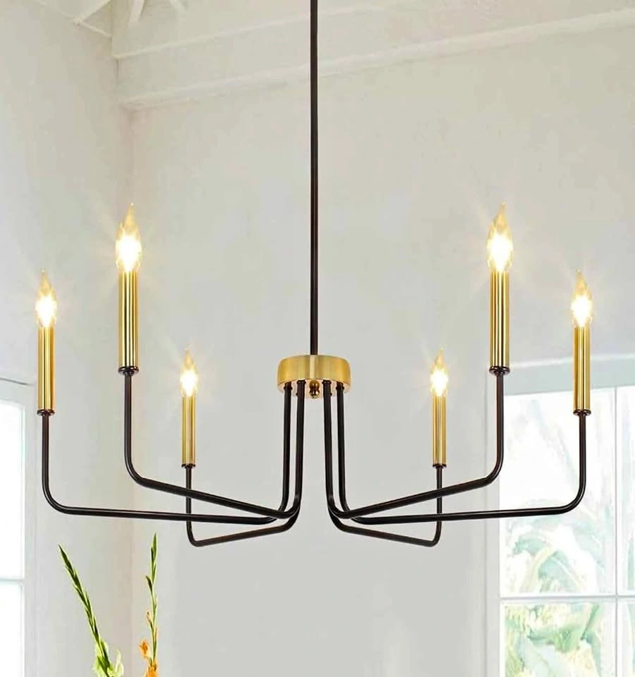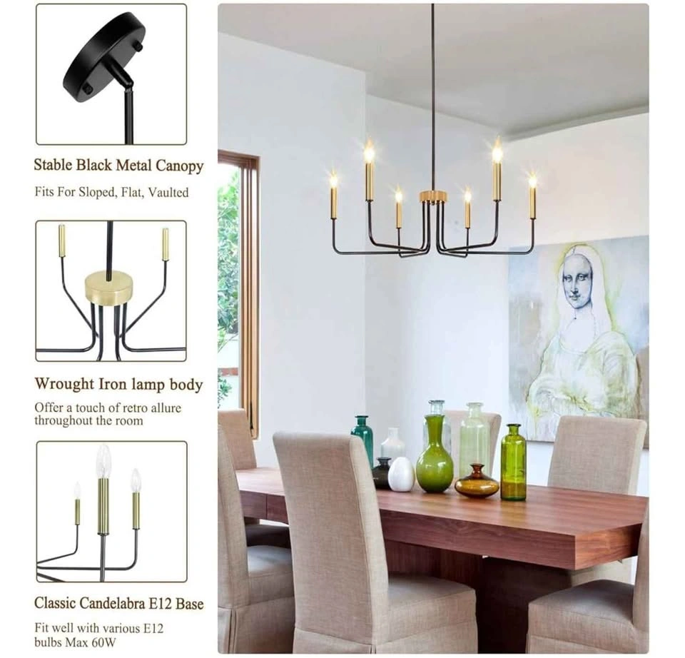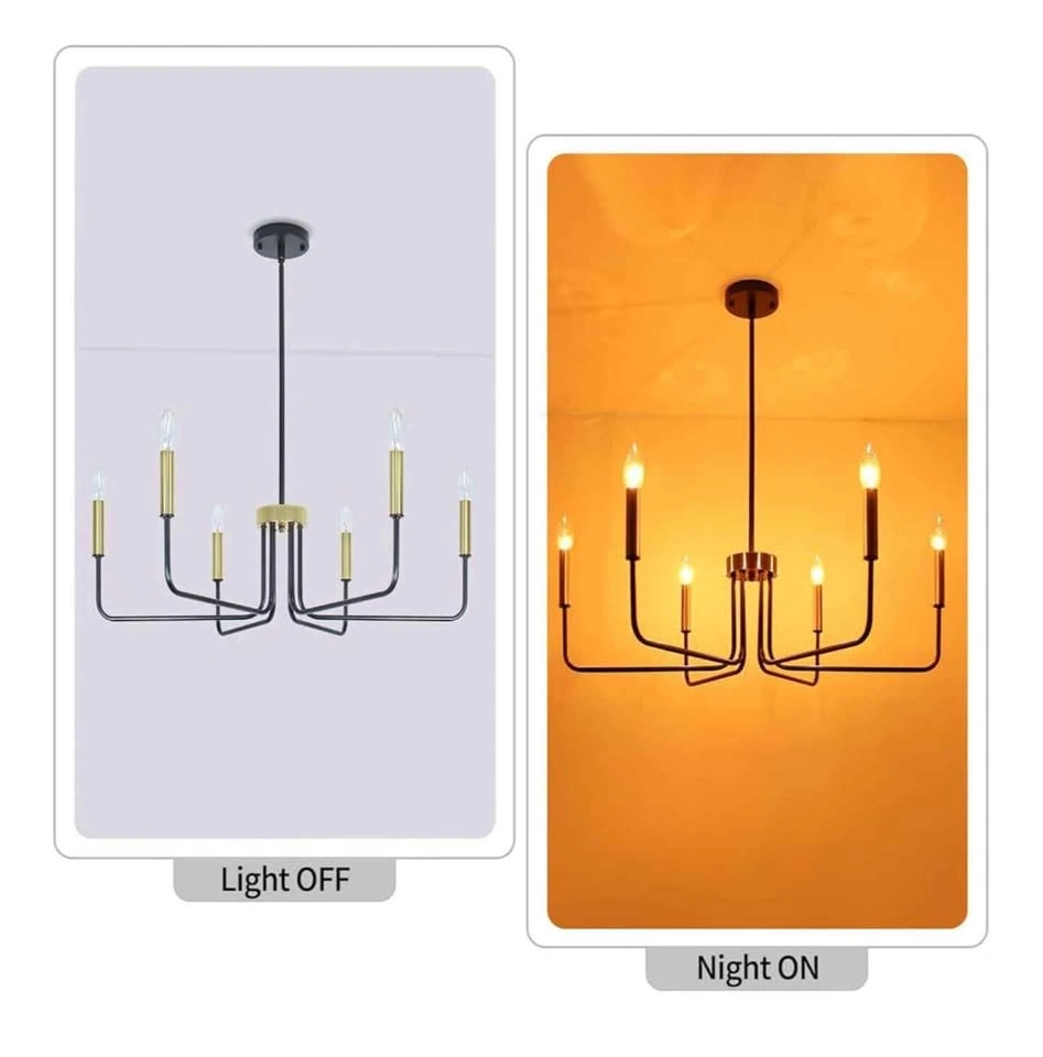 30This black and gold candle-style chandelier blends farmhouse character with shabby chic elegance — the perfect statement piece for a dining room, kitchen, or entryway. Bring soft elegance and vintage charm into your home with this black and gold candle-style chandelier. Perfect for dining rooms, kitchens, or entryways, it blends shabby chic romance with modern farmhouse style. ➛ 6 candle-style lights with E12 base (up to 60W each) ➛ Dimensions: 28.74″ wide × 7.87″ high ➛ Adjustable hanging height up to 49.72″ with splicing rods included ➛ Compatible ceilings: flat, sloped, or vaulted ➛ Condition: brand new, only opened for photos Comparable chandeliers retail for $250–$400+, but this one is priced well below retail — giving you timeless style for less. Available by appointment only. Check out my other ads ✔️