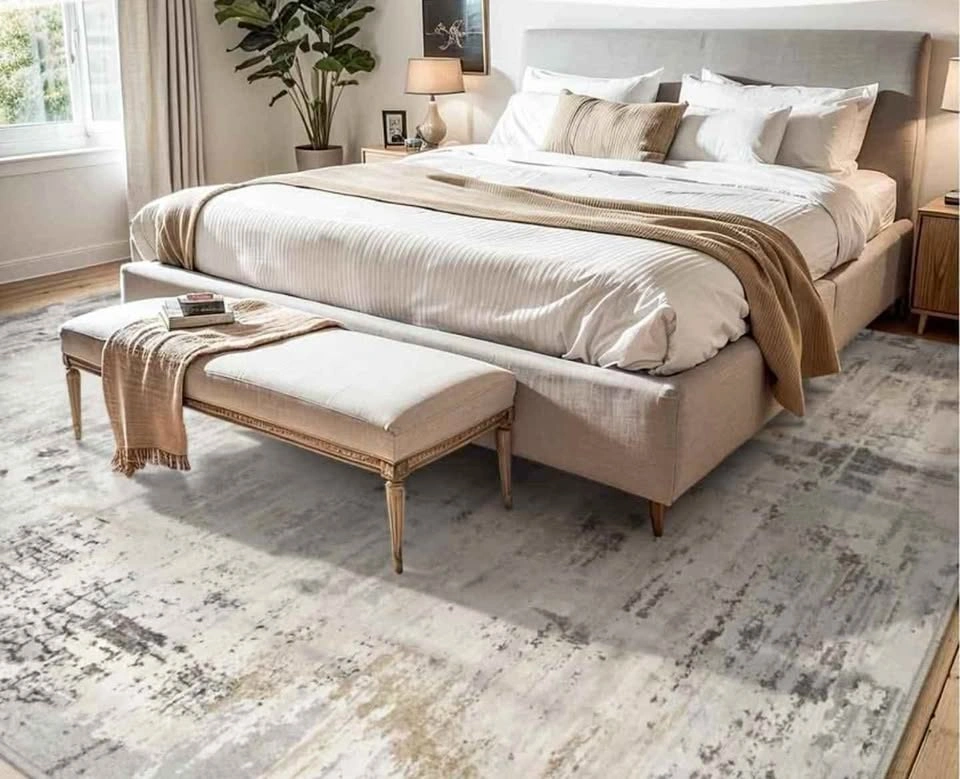 5x7 Washable Area Rug — Neutral Abstract Pattern A modern designer look with all the practicality you want. This 5x7 rug blends tones of cream, taupe, and gray in a soft, abstract wash that feels elegant and quietly luxurious. The low pile gives it a smooth texture and a polished look — perfect for bedrooms, living rooms, or home offices. Why you’ll love it: ➙ Machine washable and easy to care for ➙ Smooth, low-pile texture with a soft modern design ➙ Neutral tones that complement any decor style Serious buyers only. By appointment pickup. Thanks for visiting LUNEA — we have tons of rugs, comforters, and lighting available.