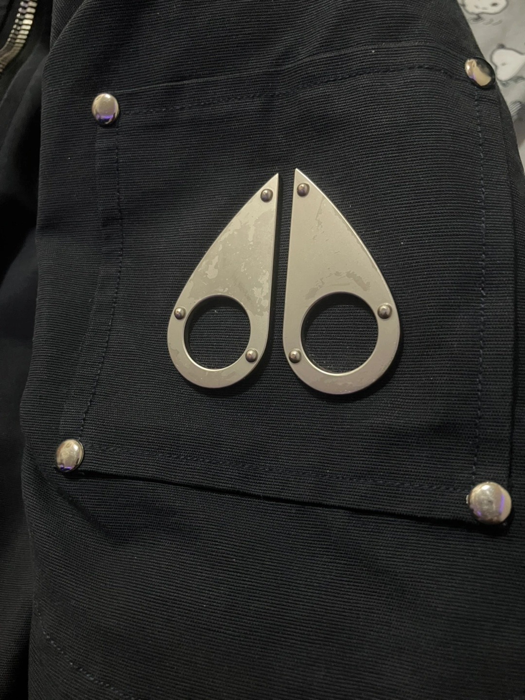 Selling a Moose Knuckles Fusion bomber jacket in size large! It's in good condition and ready for a new home. The jacket features the iconic Moose Knuckles logo on the sleeve. Perfect for staying warm and stylish during the colder months