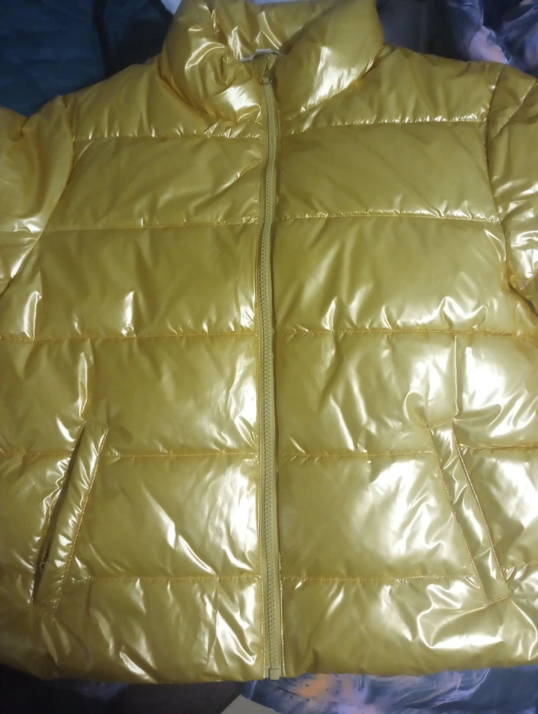 Selling a stylish yellow puffer jacket! It's in great condition and ready to keep you warm and cozy during the colder months