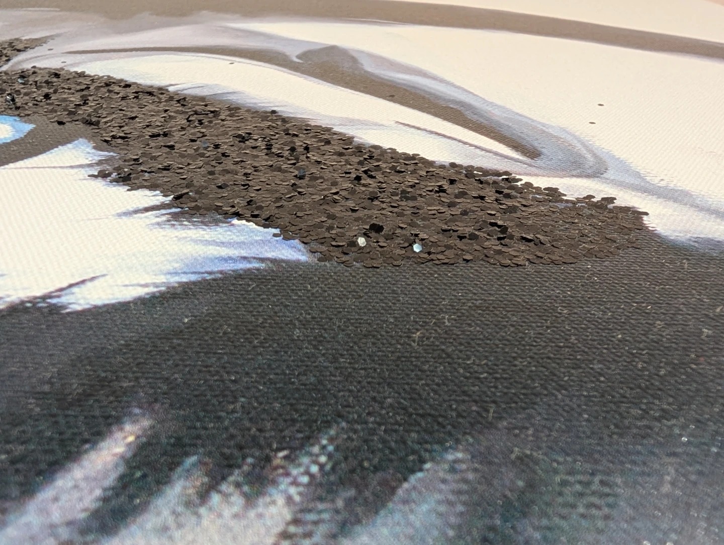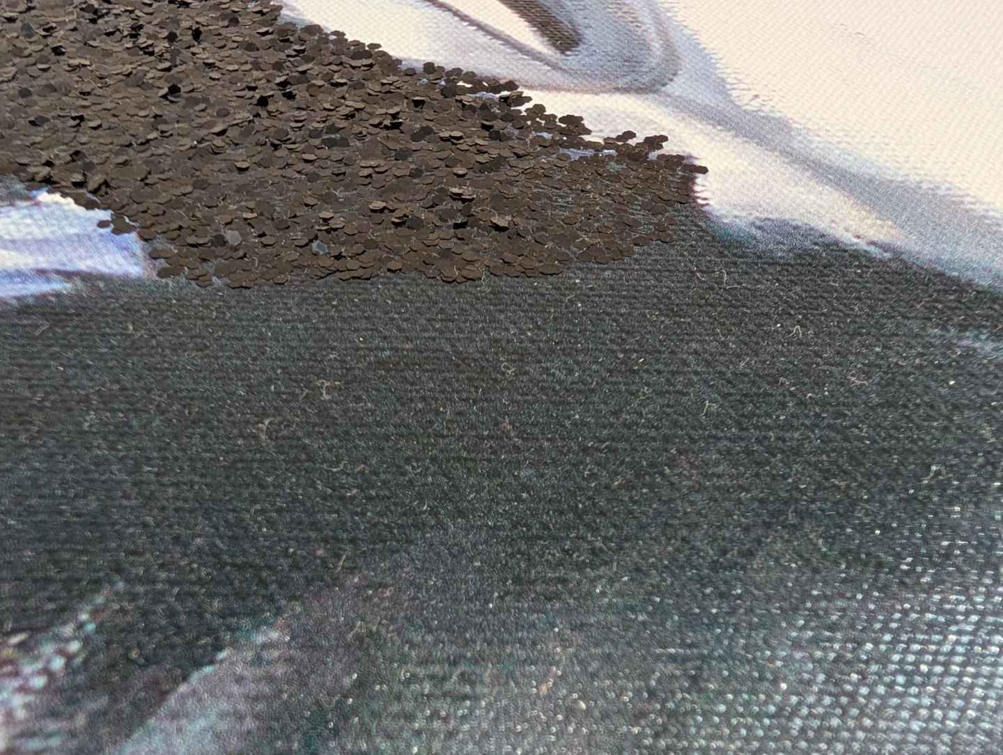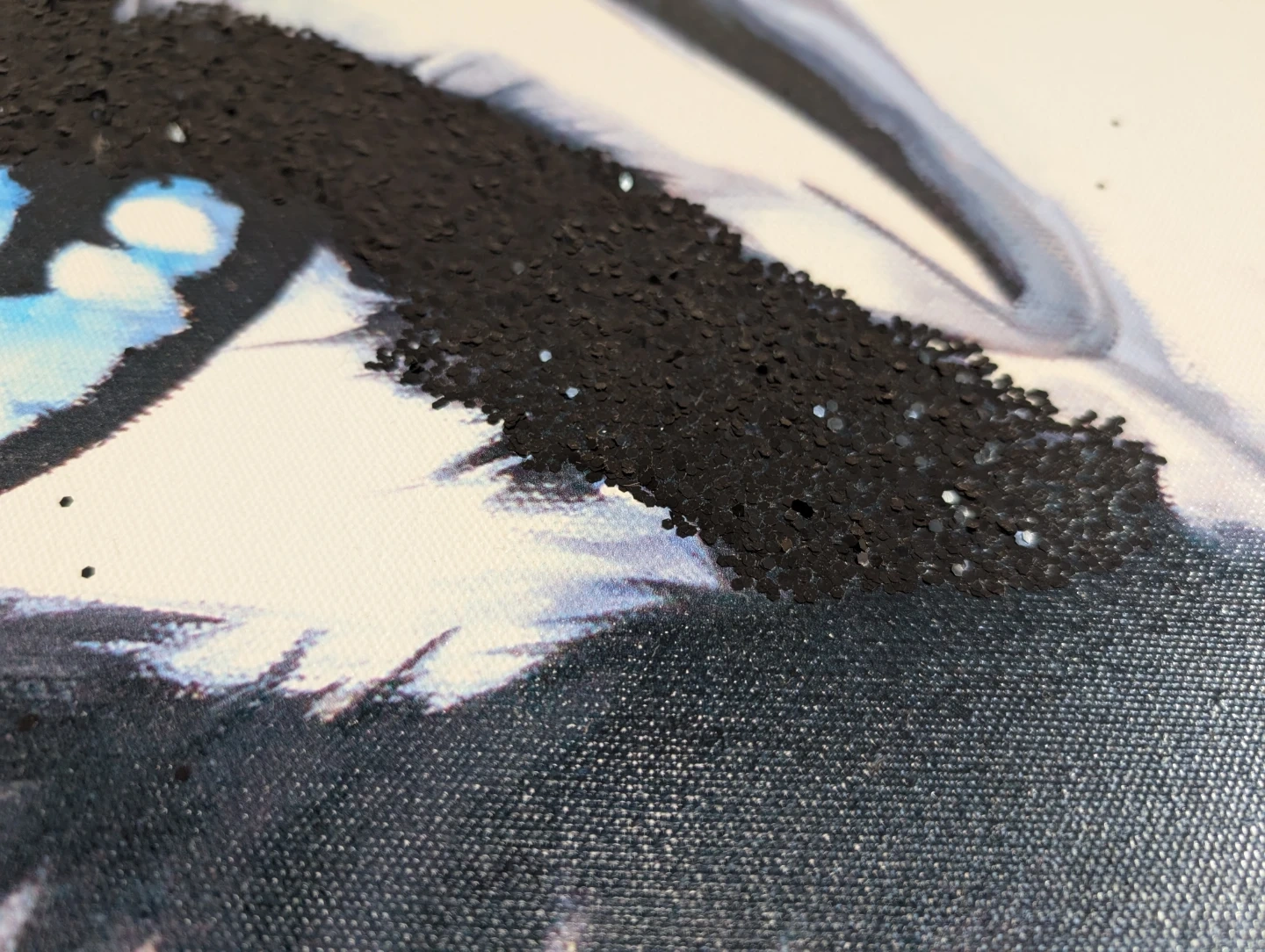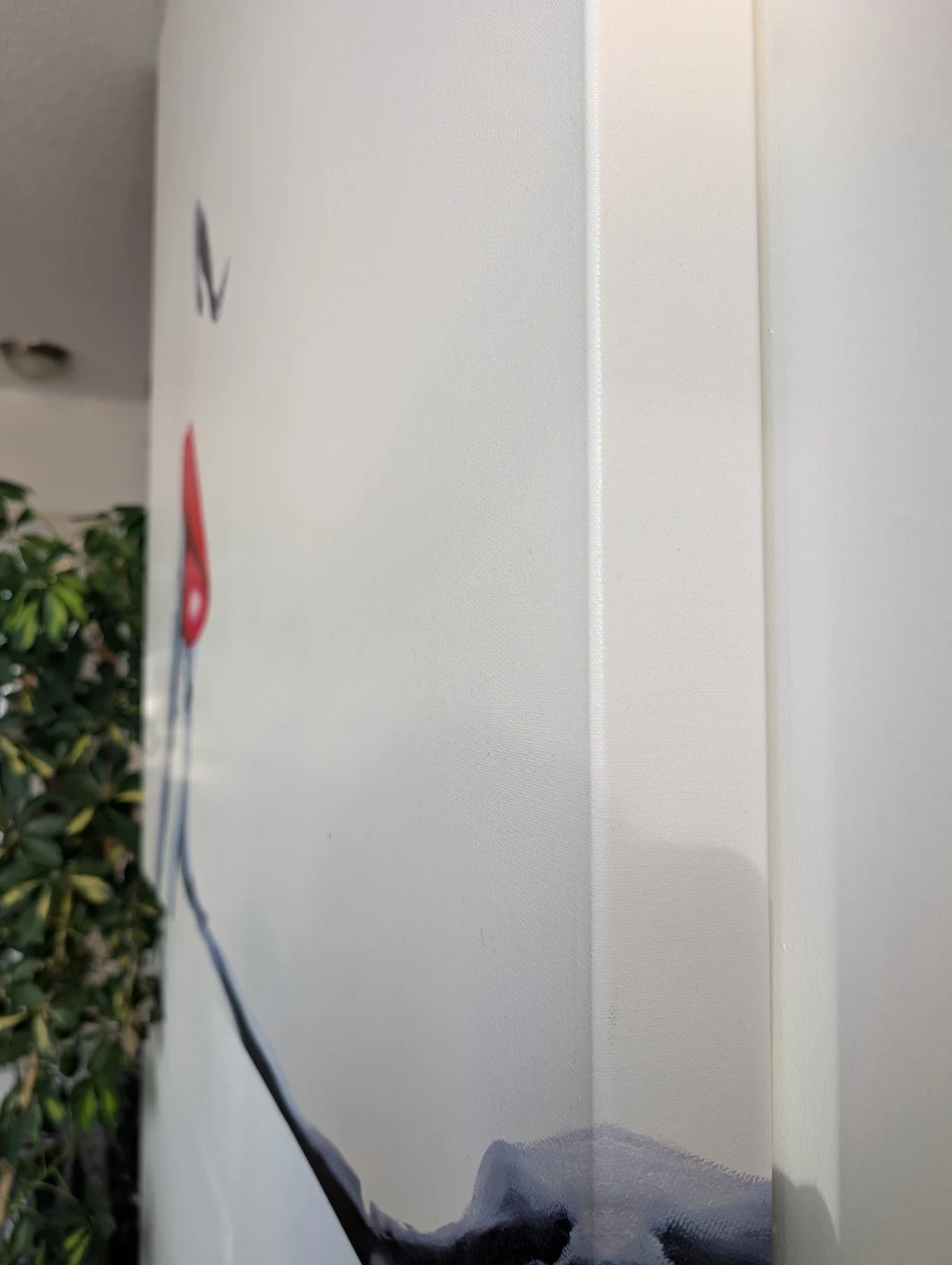 Selling a large painting on canvas. It's a striking image of a face, featuring bold red lips and a detailed eye. The canvas is in great condition and ready to hang in your home!