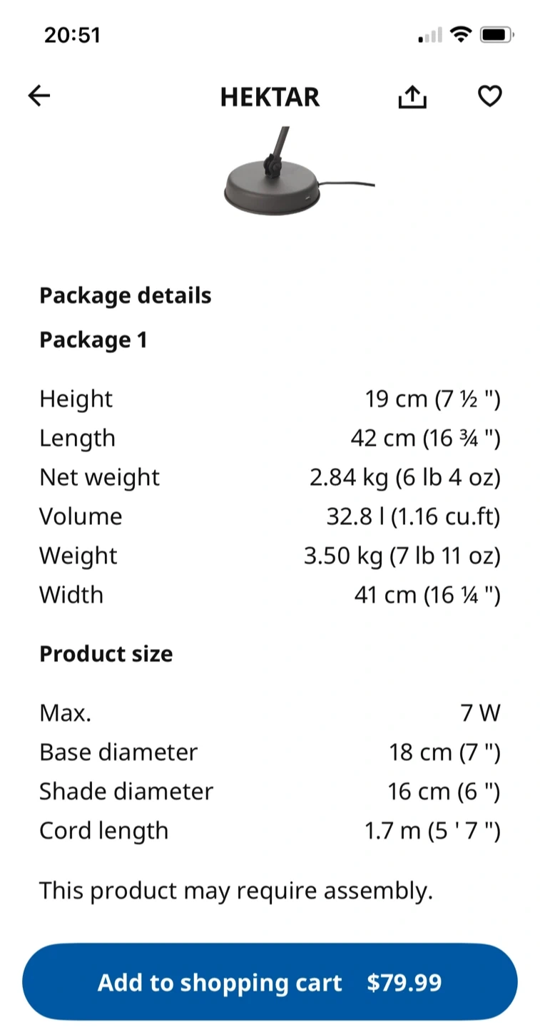 607Selling an IKEA Hektar desk lamp in dark grey! It's in great shape and ready to brighten up your workspace. The lamp has a max of 7W, a base diameter of 7 inches, and a shade diameter of 6 inches. The cord length is 5'7". Retails for $79.99!