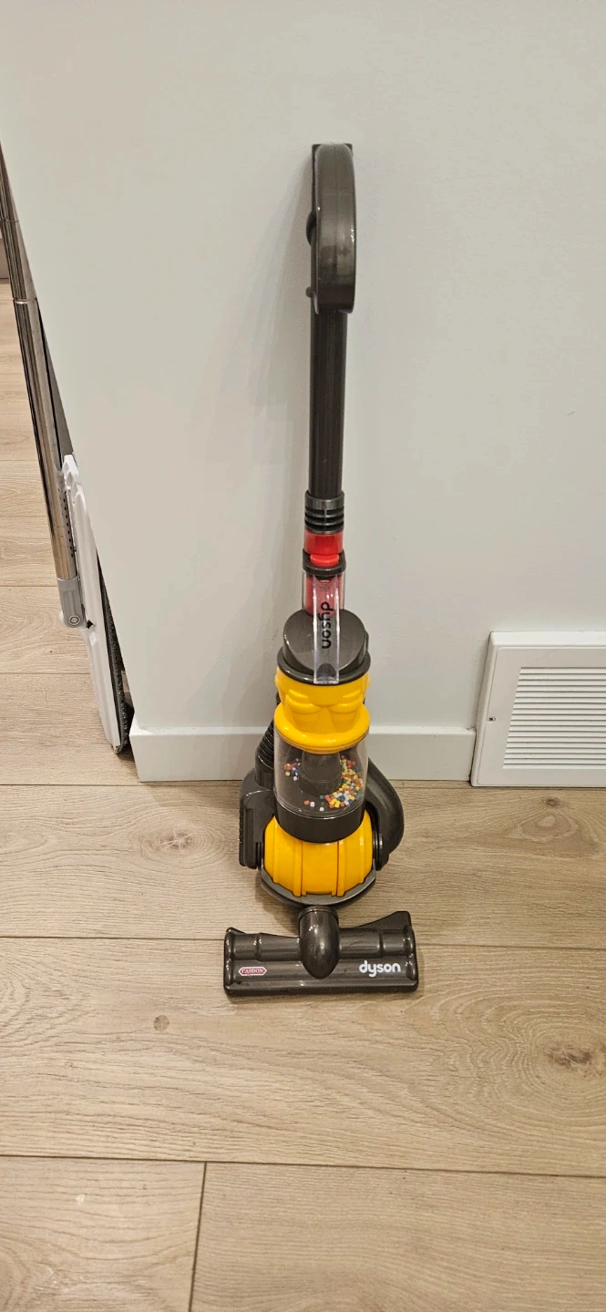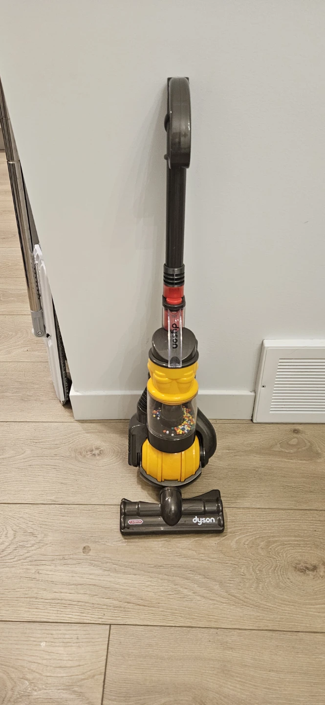 Selling a Dyson Ball toy vacuum! It's perfect for kids who love to pretend play. This toy vacuum looks just like the real thing and even has colourful beads inside that swirl around when you push it. Your little one will have hours of fun "cleaning" around the house with their very own Dyson!