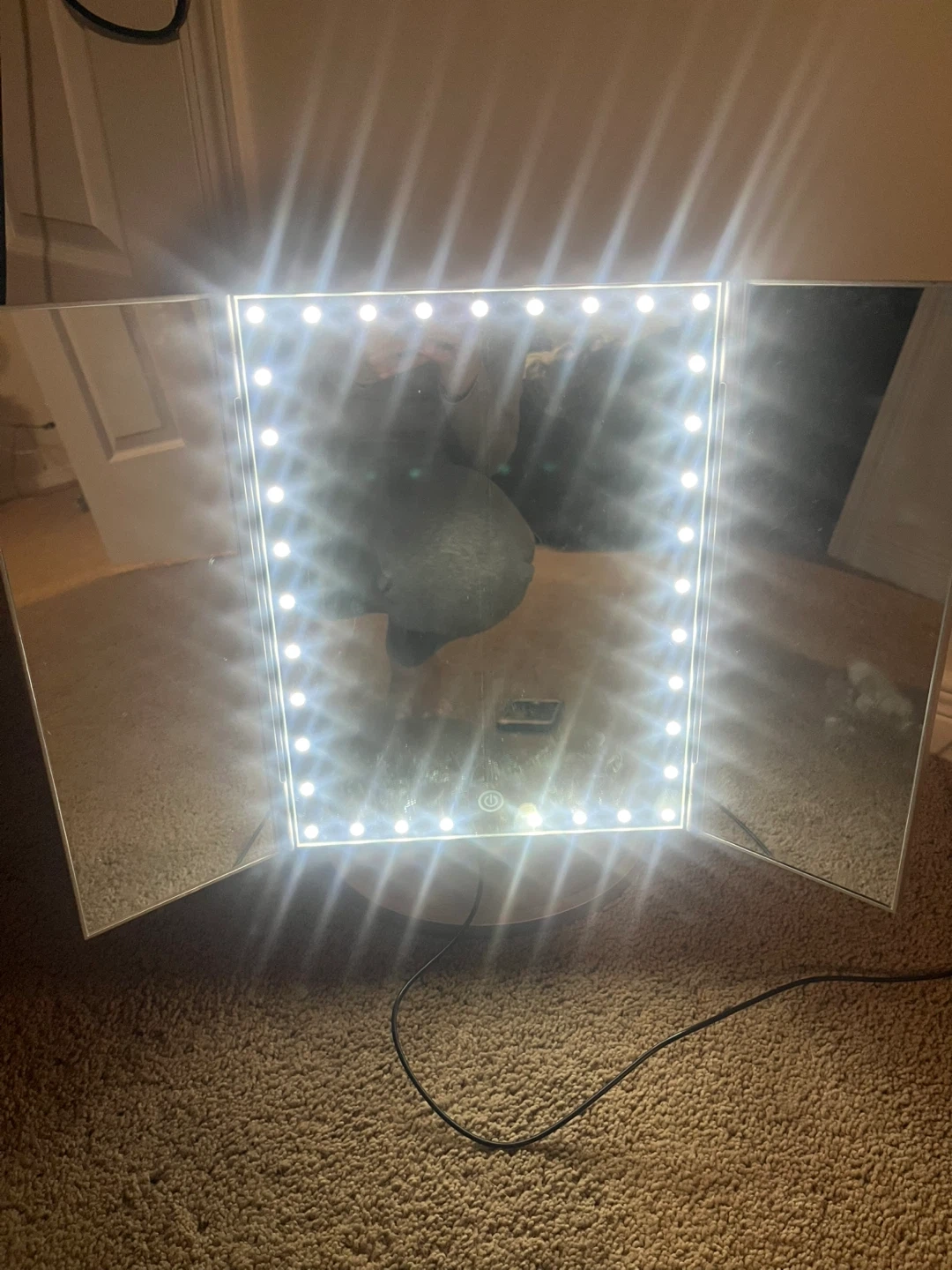98Selling an Impressions Vanity Touch Trifold XL Dimmable LED Makeup Mirror with Standing Base. It's a vanity dressing mirror with a USB cable. Retails for $85.99