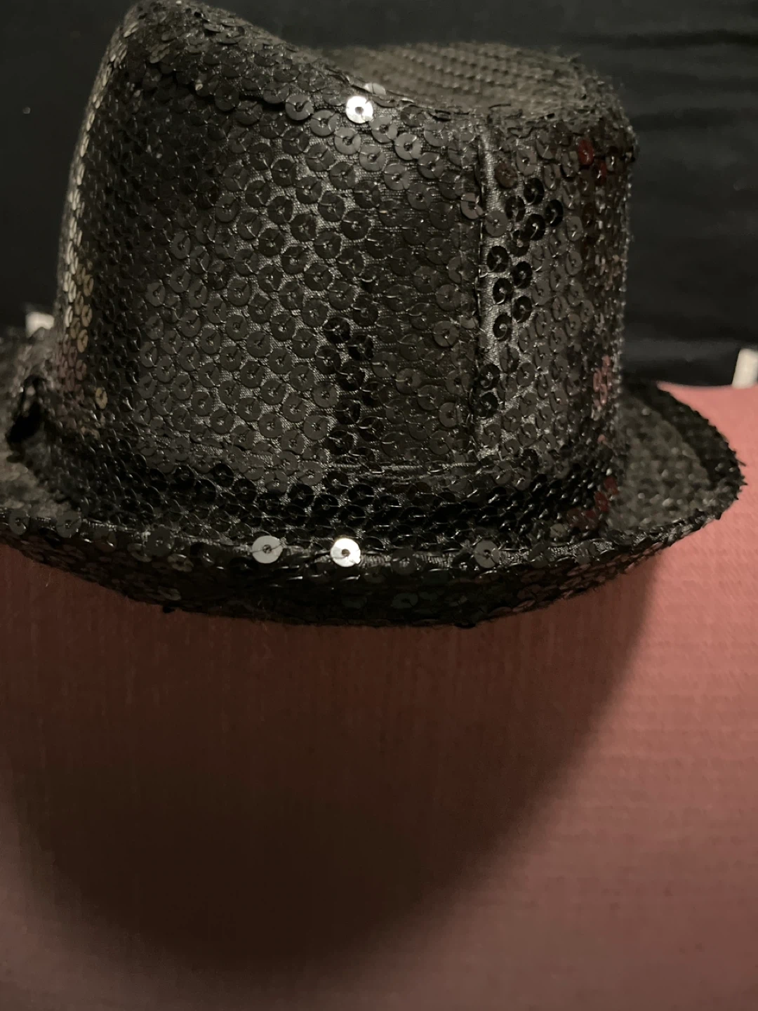 Here's a fun black sequin fedora hat! It's in great condition and ready to add some sparkle to your outfit or costume