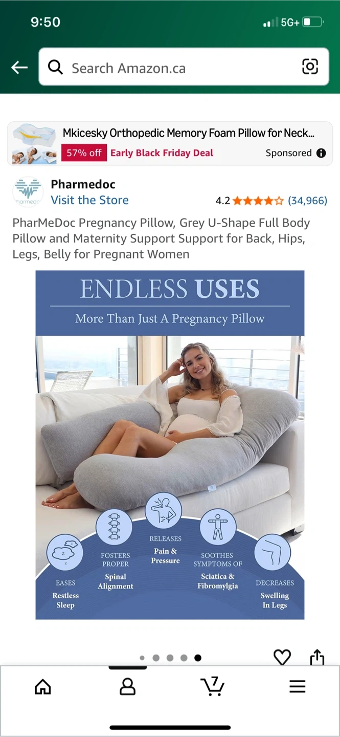 Selling a Pharmedoc pregnancy pillow in grey. It's a U-shape full body pillow that offers support for your back, hips, legs, and belly. The pillow is made with ultra-soft jersey cotton and is breathable and durable. It's certified chemical-free and has a machine washable cover