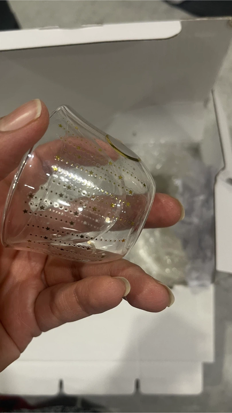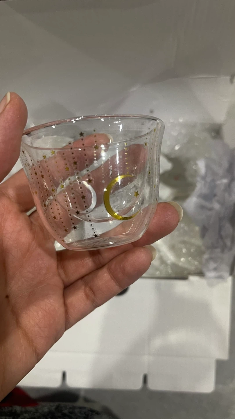 34A small cup double wall glasses with a cute moon and stars design! These are in excellent condition and come in the original box. Perfect for enjoying your favourite hot or cold beverages at home 6 pieces
