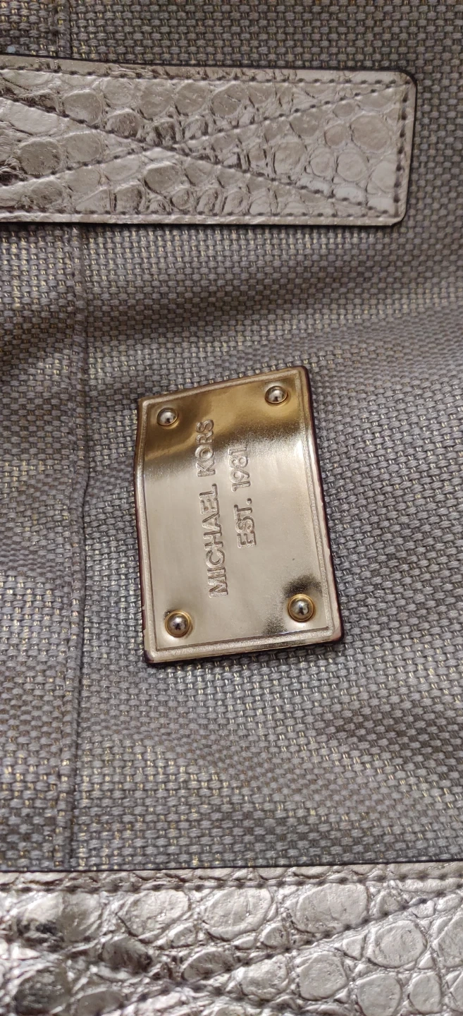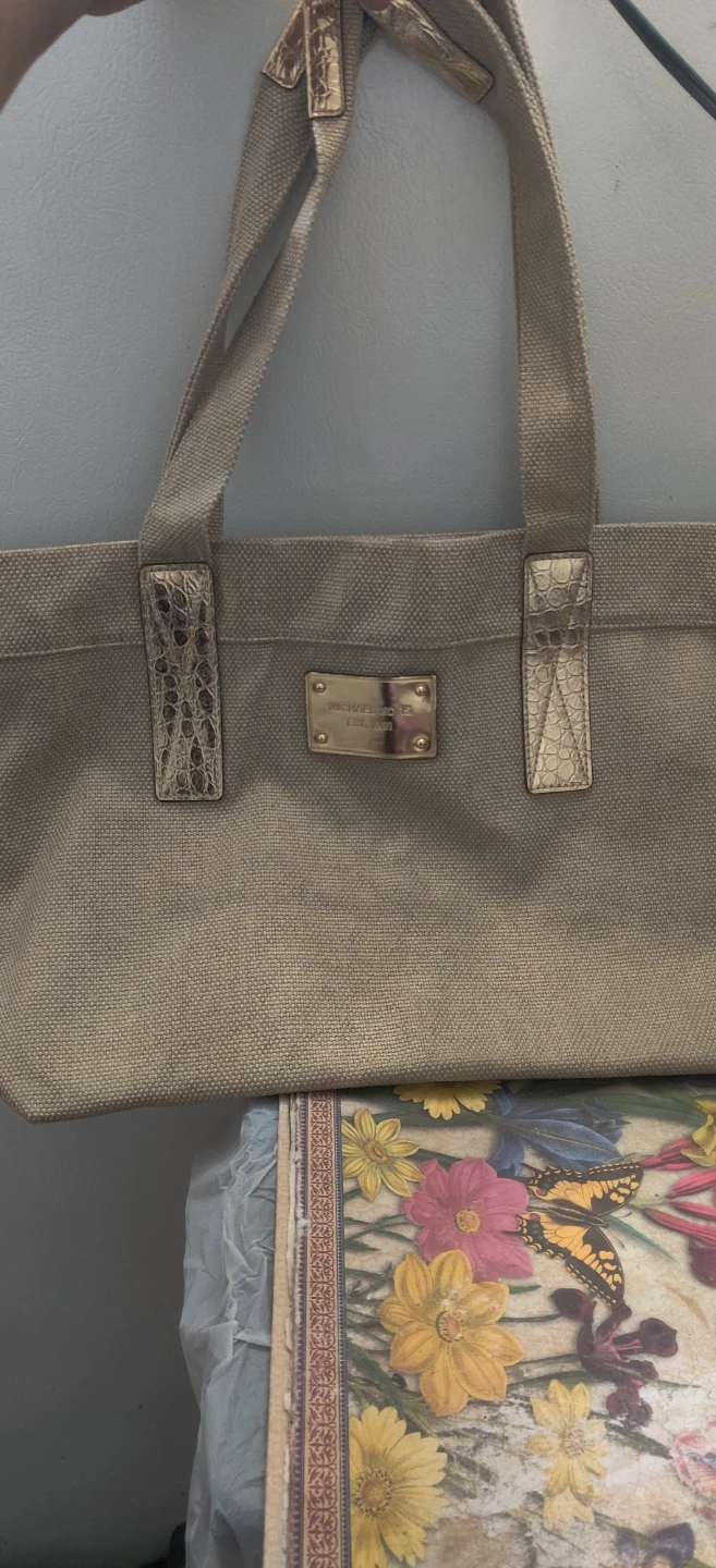1000+This is a Michael Kors tote bag! It's brand new and has a stylish design with metallic accents. Perfect for everyday use or as a chic accessory. Bag have no inside pockets and doesnt have a zippered closure