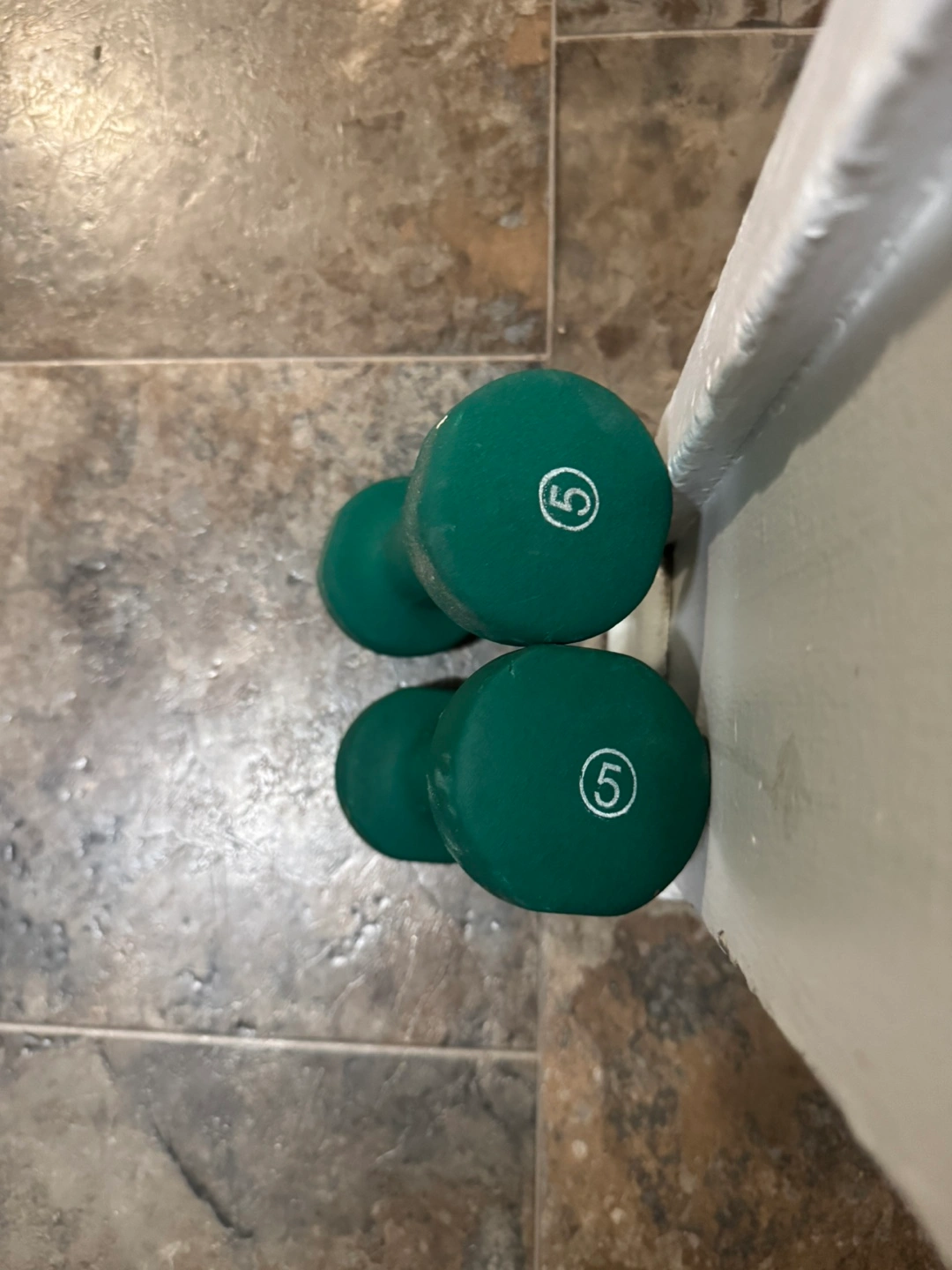 Selling a set of dumbbells! Includes two 5lb green dumbbells and two 10lb black dumbbells. They're in used condition, as you can see in the photos, but still perfectly functional for your home workouts..