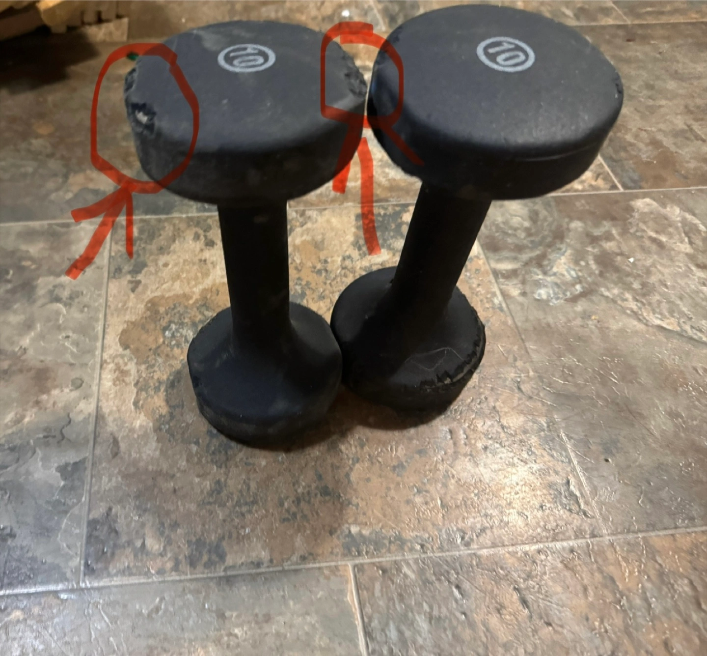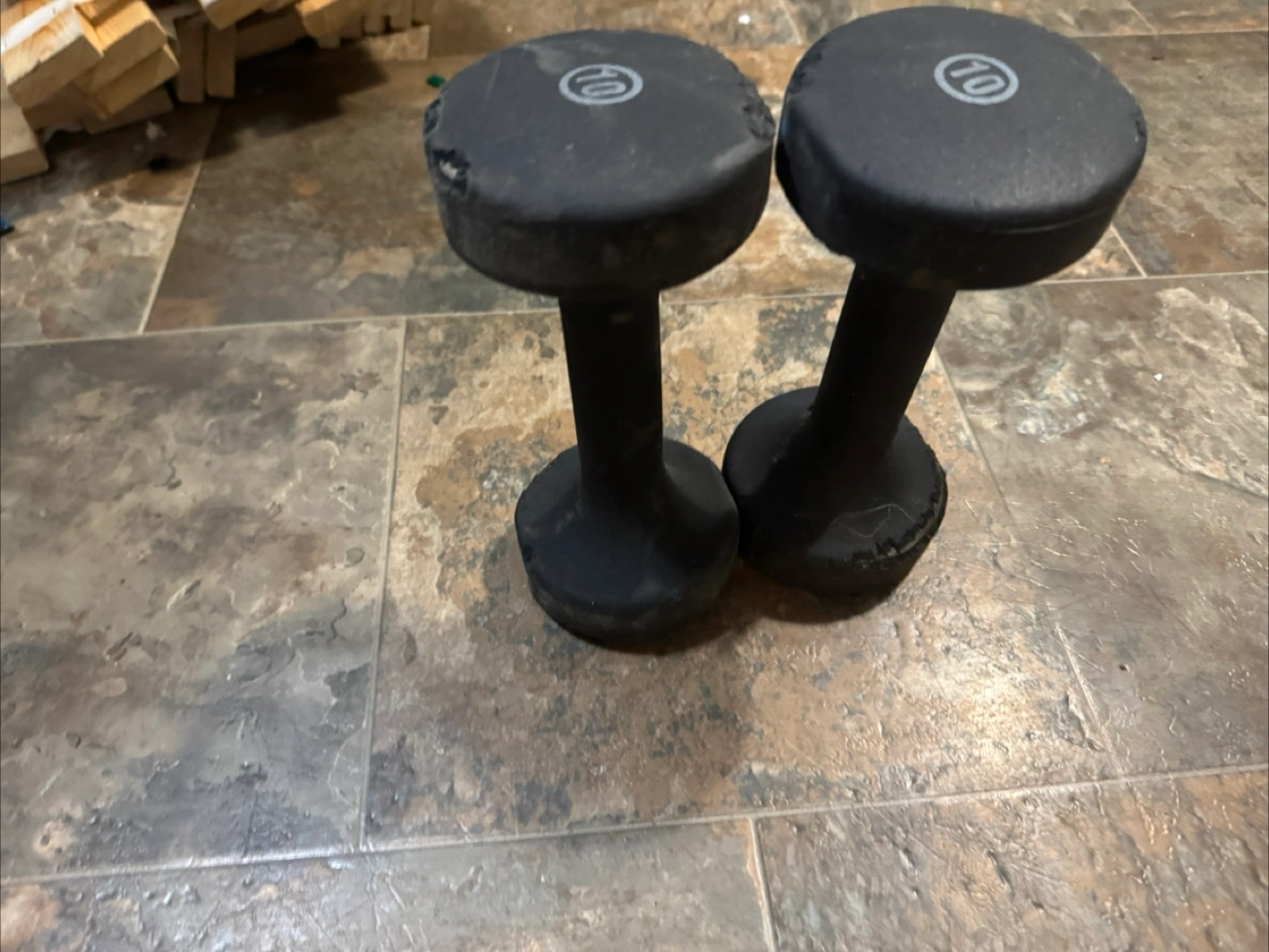 Selling a set of dumbbells! Includes two 5lb green dumbbells and two 10lb black dumbbells. They're in used condition, as you can see in the photos, but still perfectly functional for your home workouts..