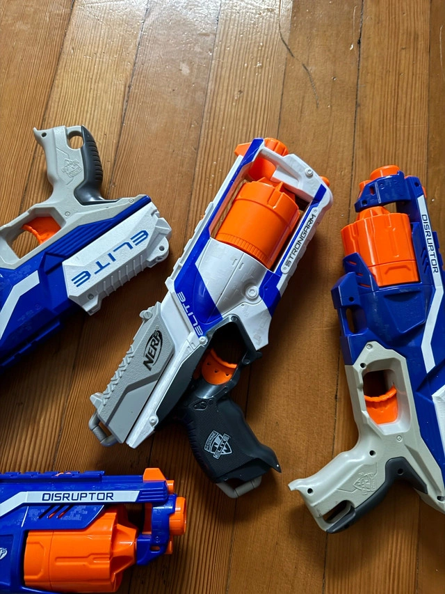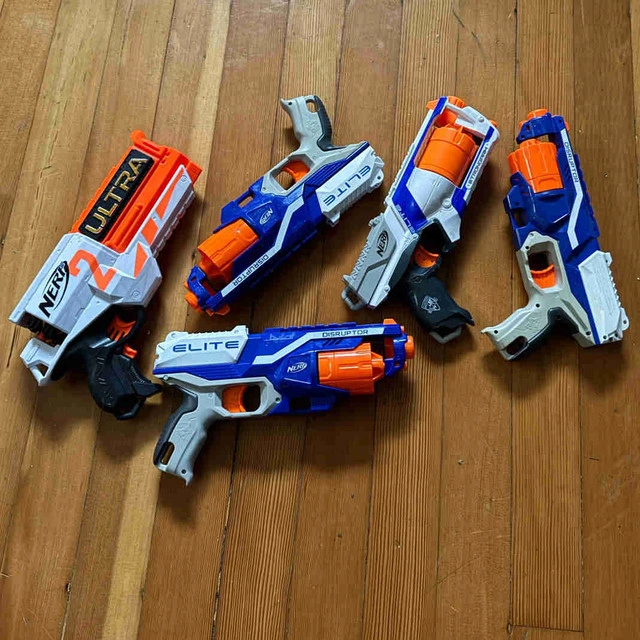 I am selling a collection of used Nerf guns, perfect for some high-energy fun! This set includes a variety of models, each with its unique design and dart-firing capabilities. Please note that these guns are in used condition, showing signs of play, but are fully functional and ready for action. Embrace your inner child and gear up for an epic Nerf battle! They have been tested and are in good working order. Looking at similar listings these generally go for $10-20 a piece, so I have priced them accordingly. If the ad is still up, then they are still available!