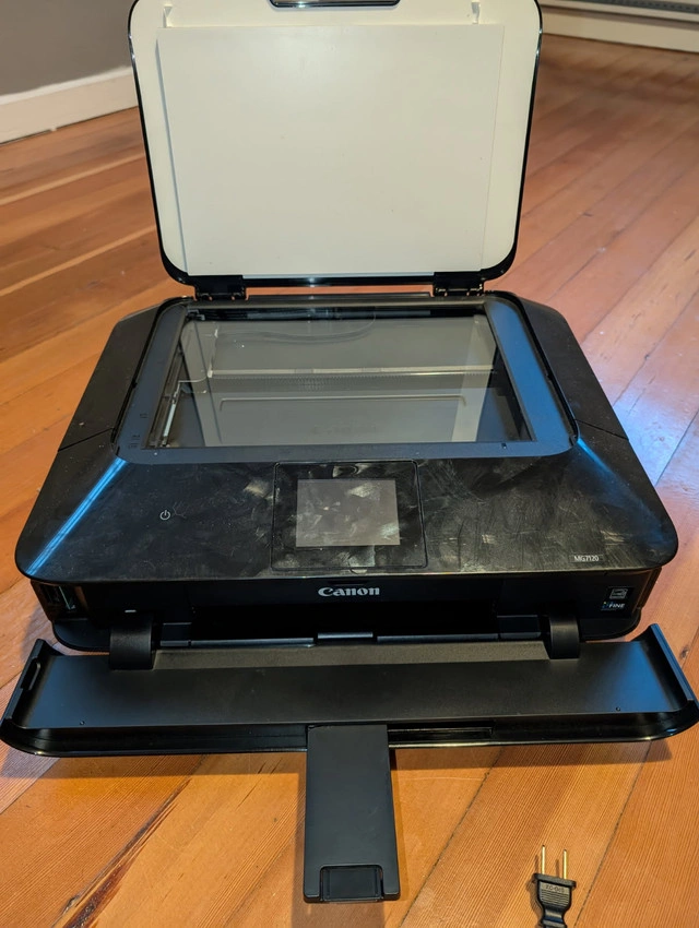 Canon PIXMA MG7120 inkjet printer, copier, and scanner. Works great and comes with the power cord. Has wireless printing, touchscreen controls, and memory card support. Powers on and functions properly. Ink cartridges may need replacing. Great for home or student use. Asking $60, brand new was aprox $200. Pickup only.