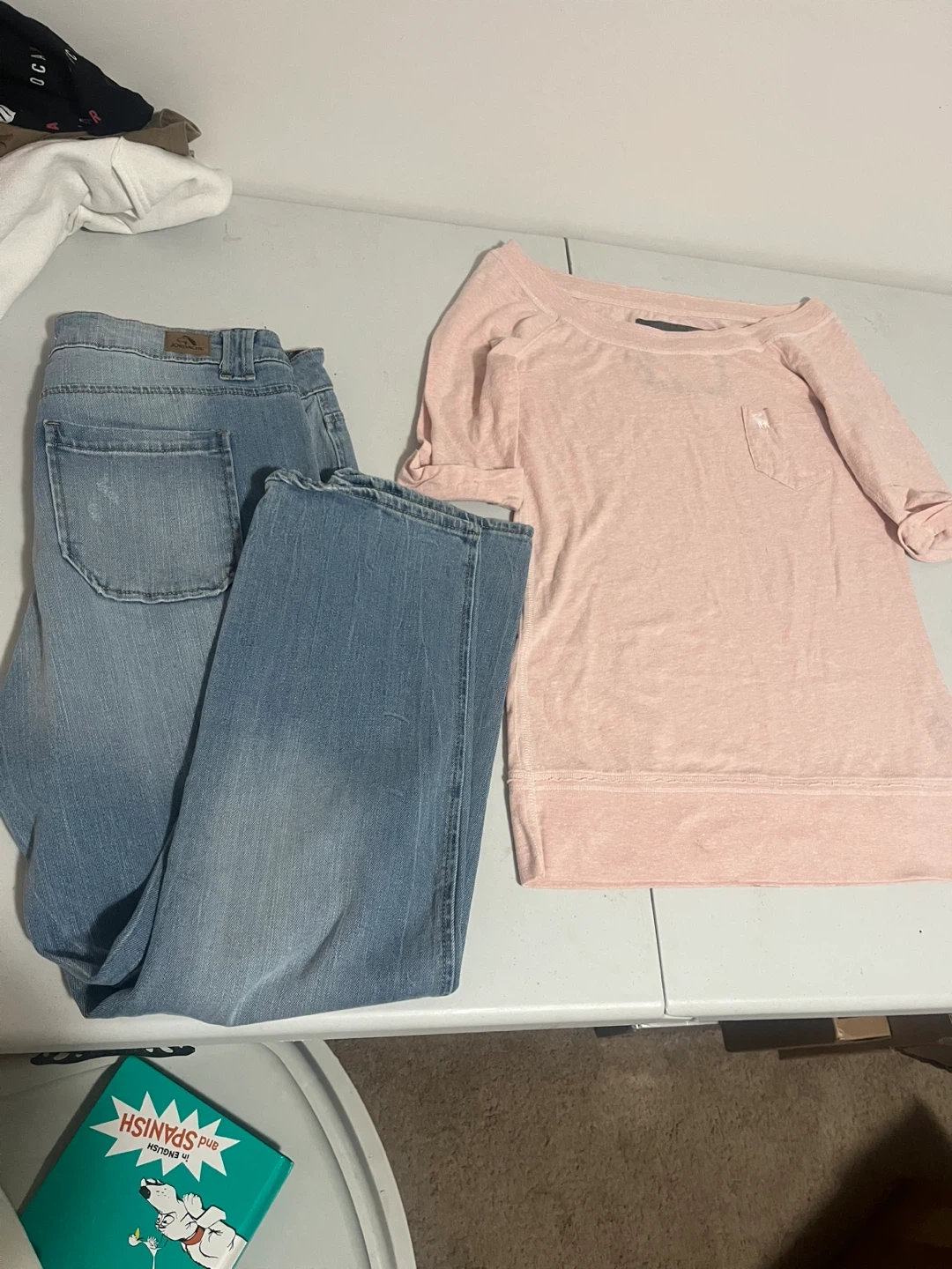 98Selling a cute Abercrombie & Fitch top paired with Jordache jeans! The jeans are a size 12 and in great condition. Perfect for a casual, comfy outfit!