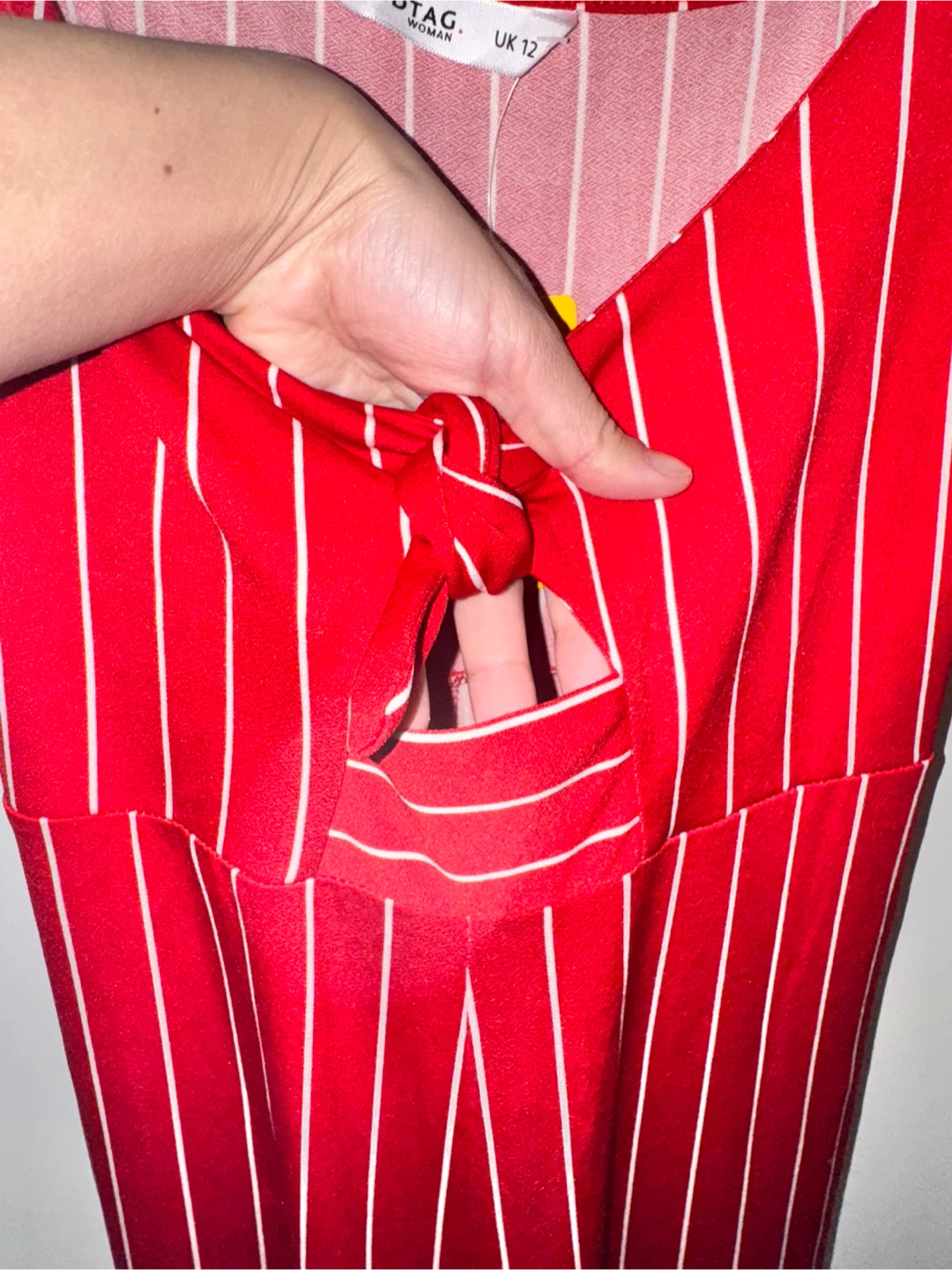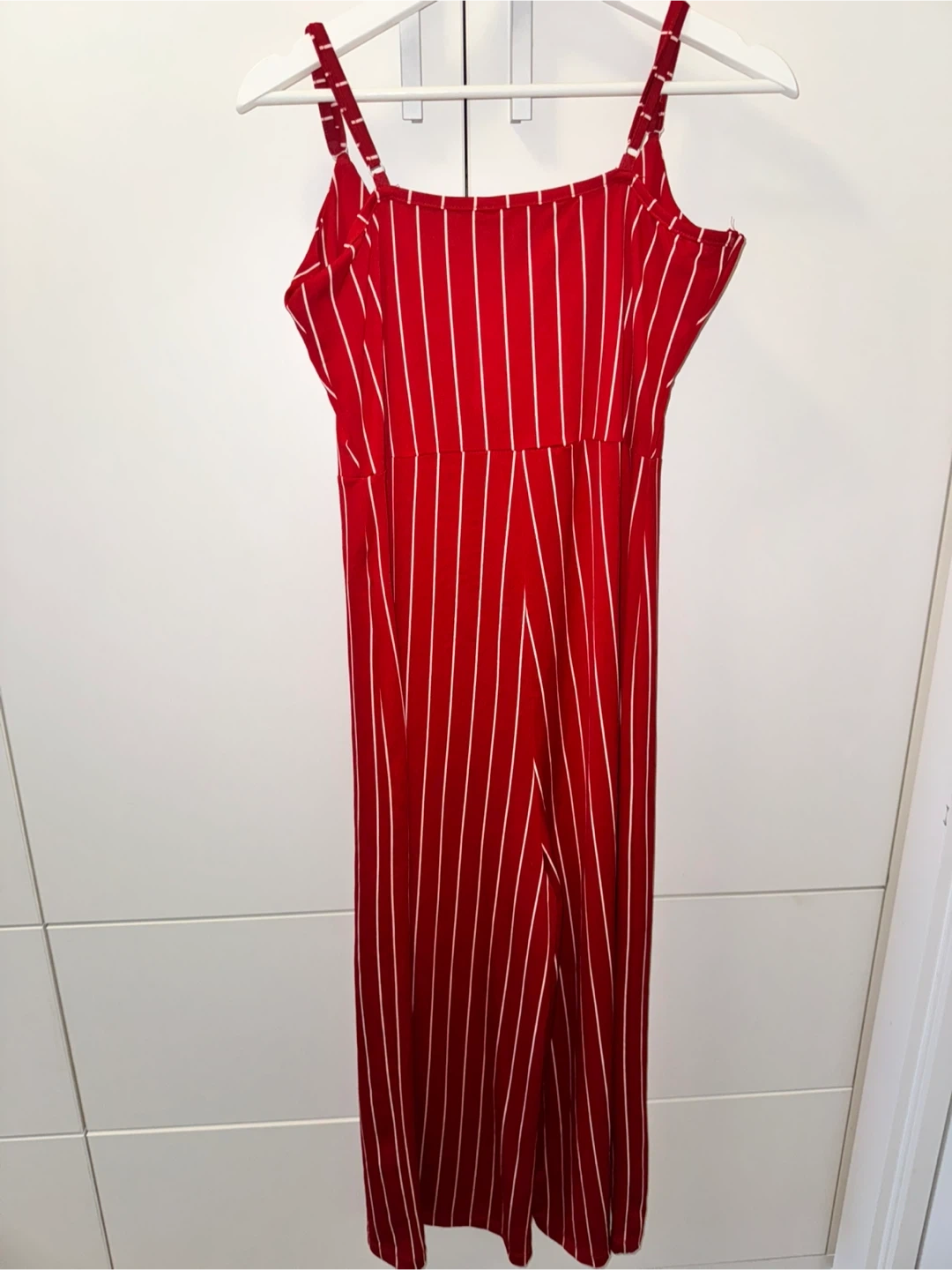 Selling a cute red and white striped jumpsuit! It's in great condition and perfect for summer. The size is UK 12.