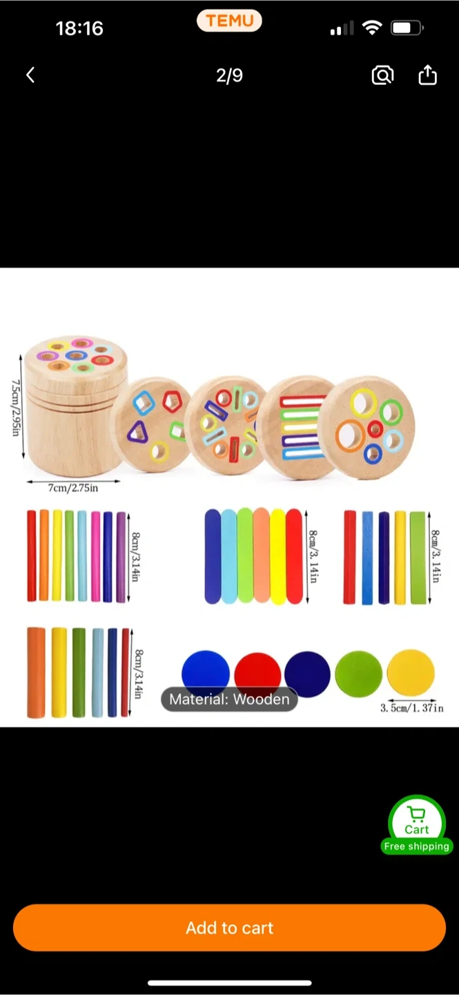 I'm selling a wooden shape sorter toy for kids! It's a fun and educational toy made from wood, perfect for helping little ones learn about shapes and colours. The toy includes various shapes and a container with corresponding holes for sorting. Your child will have a blast while developing their problem-solving skills!