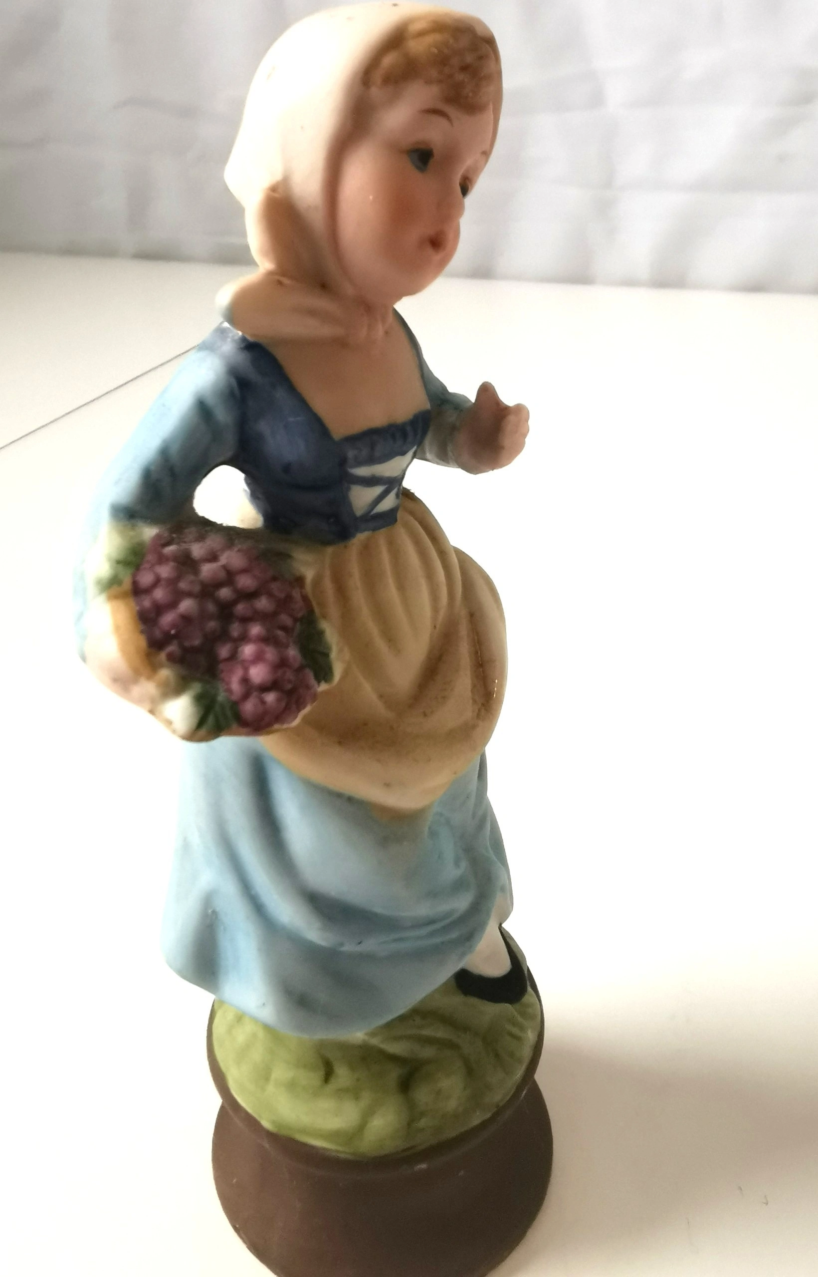 Discover a charming addition to any collection with this Vintage Ardalt figurine, featuring a delightful depiction of a girl carrying a basket of grapes.
