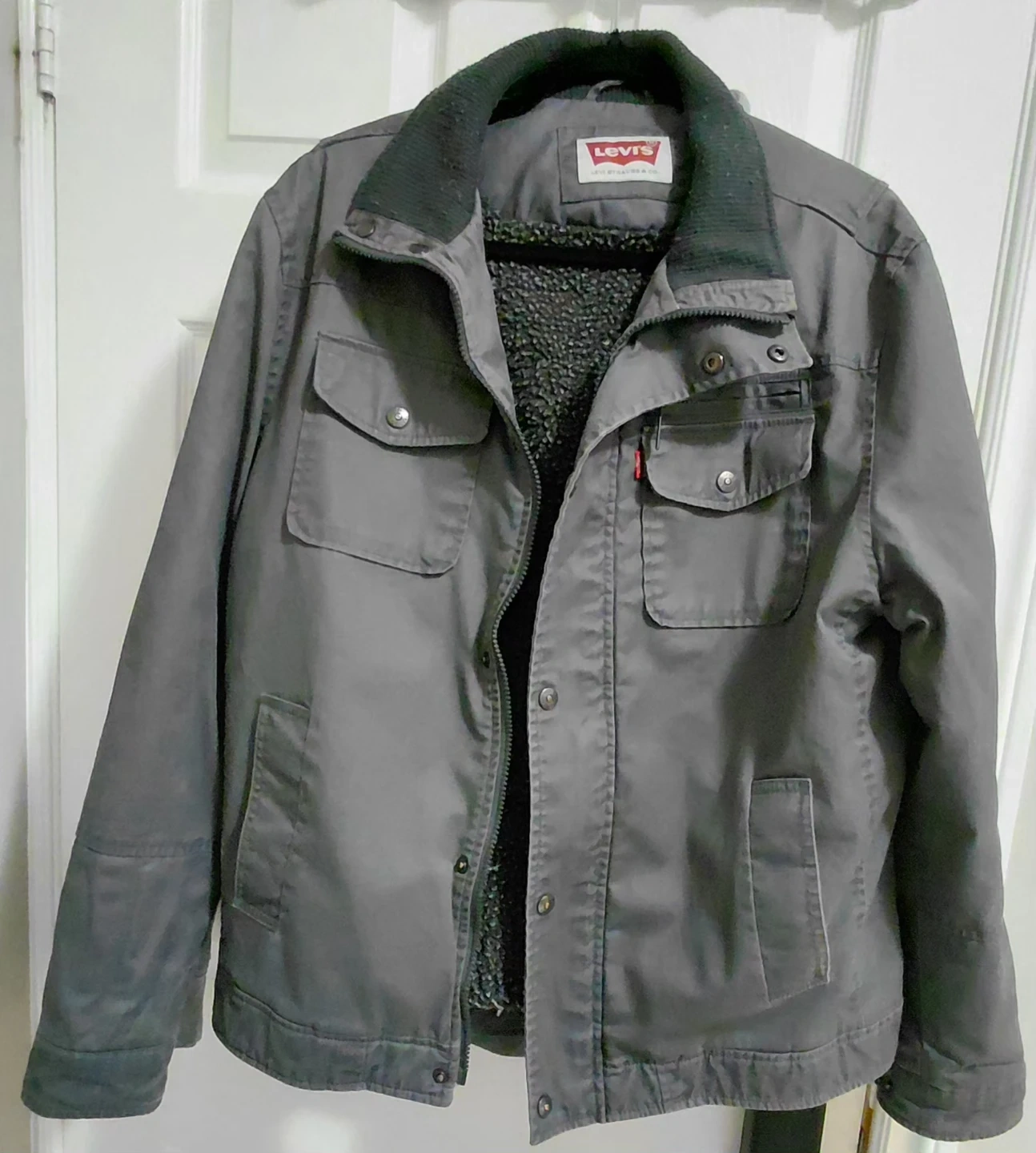 Buy & SellLevi’s sherpa jacket in color Grey Iron, size Large. Good conditLevi’s sherpa jacket in color Grey Iron, size Large. Good condit$47Levi’s sherpa warm jacket in color Grey Iron, size Large. Good condition, clean and stylish — great quality and fit.ConditionLike newSizeLargeBrandlevis 0 chats·0 favorites·16 viewsSELLERSamDovercourt595 reviewsWHERE TO MEETfront of Dundas West Station