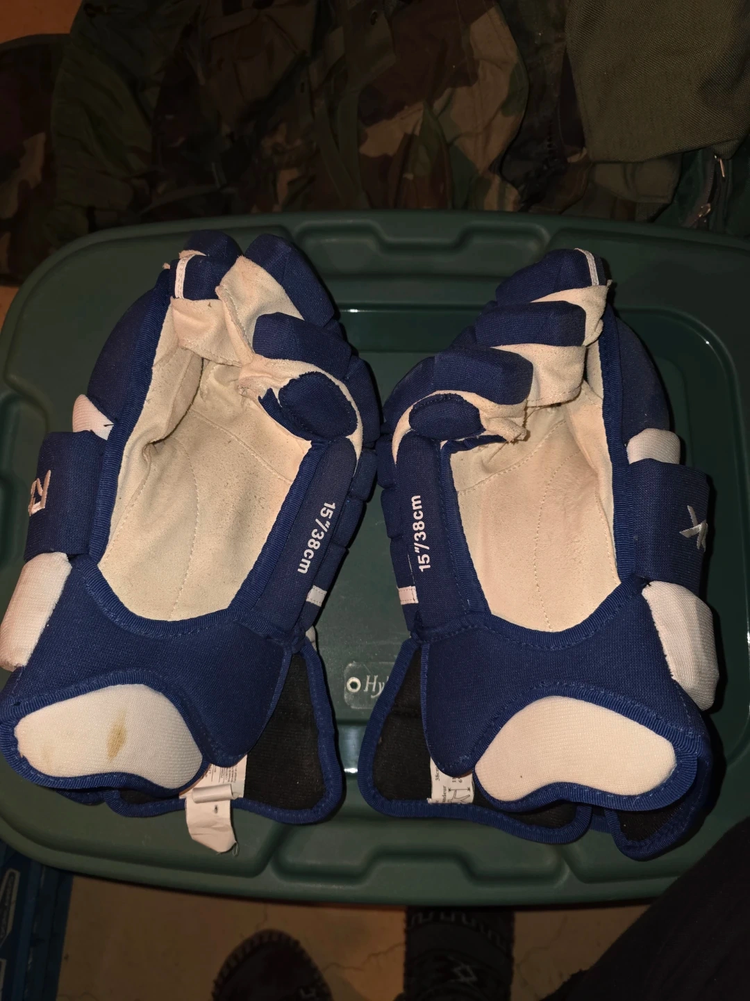 Selling a pair of blue and white adult reebok hockey gloves. These gloves were literally worn a few times and are basically brand new.