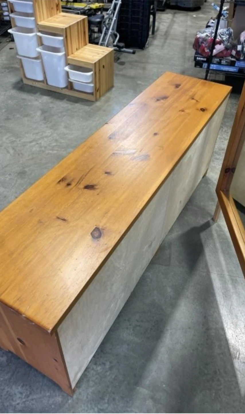 A lovely pine dresser with a mirror. It has a warm, natural wood finish. The dresser features multiple drawers for ample storage space. The mirror is framed with matching wood, complementing the dresser's design. Measurements to follow: Delivery can be arranged. Viewing and pickup by appointment.