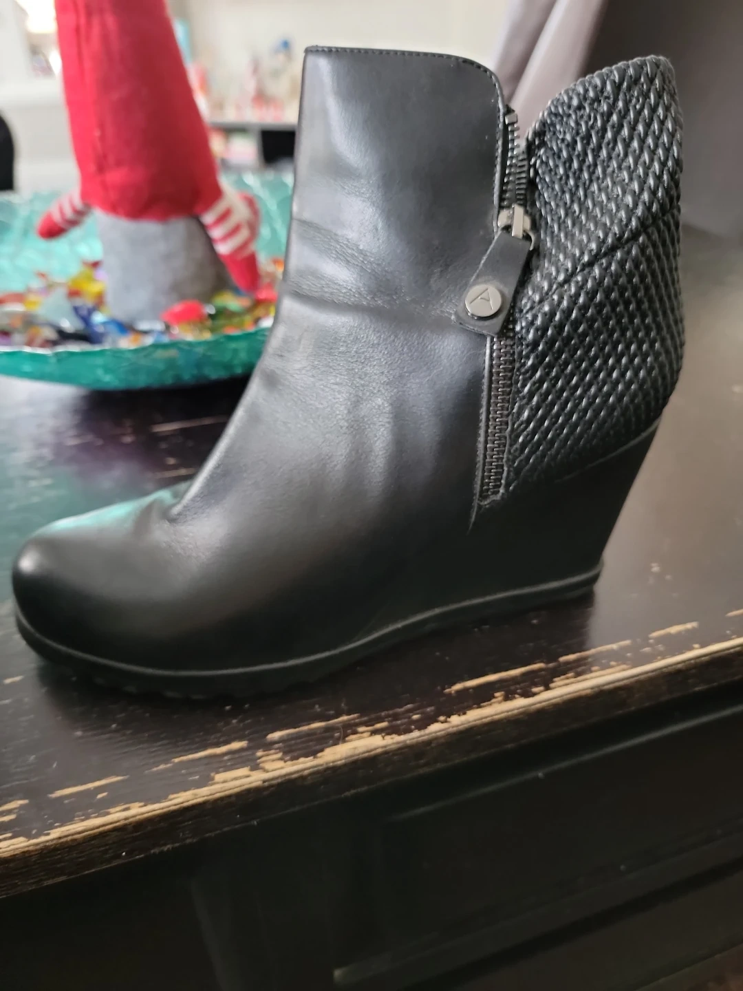 Artica Black Leather Wedge Boots – Size 11 – NEW