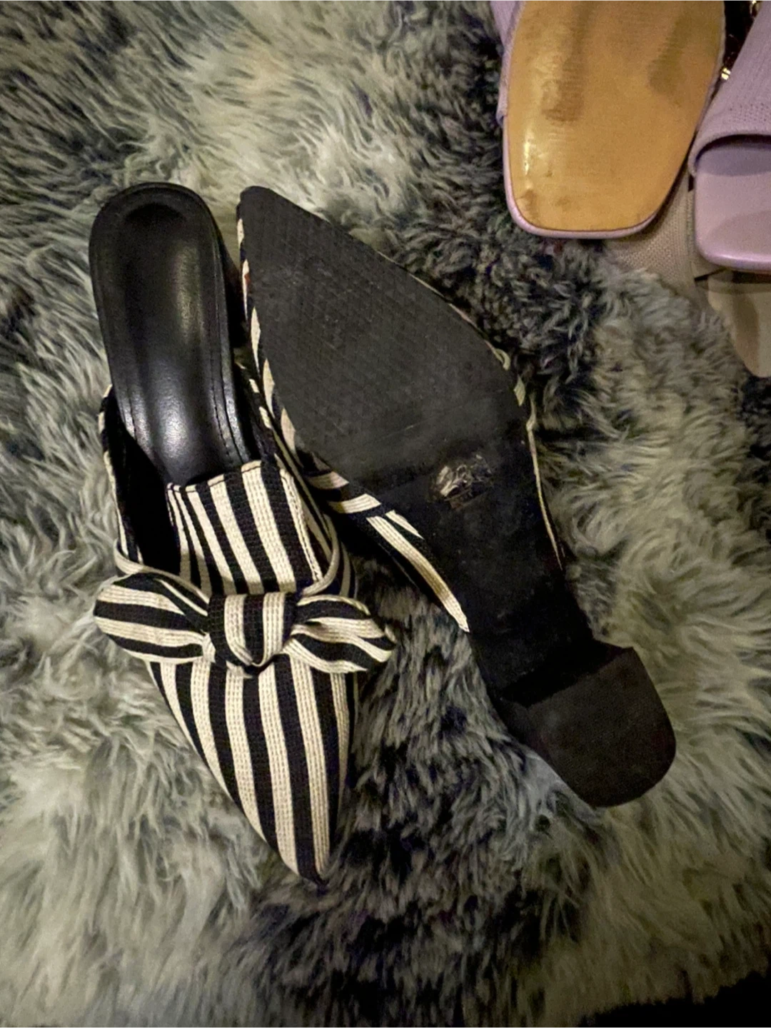 Cute striped mule heels with a bow detail! They're in great condition and ready for a new home. Size 7.