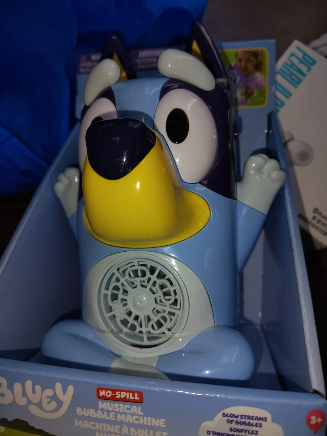 Selling a brand new Bluey No-Spill Musical Bubble Machine! It's still in its original box, ready for some bubbly fun. Blow streams of bubbles with this adorable Bluey-themed machine. Perfect for kids aged 3+