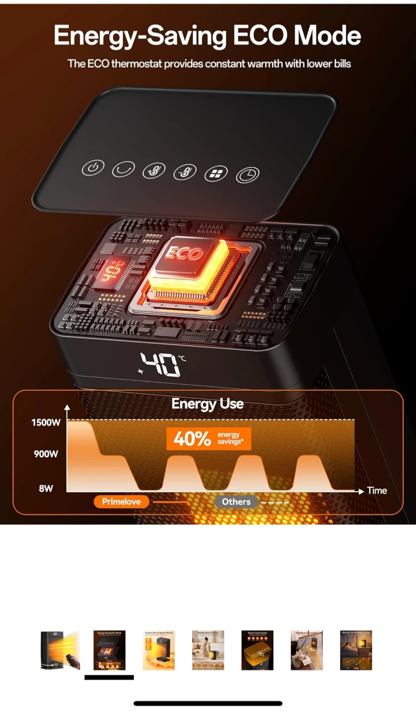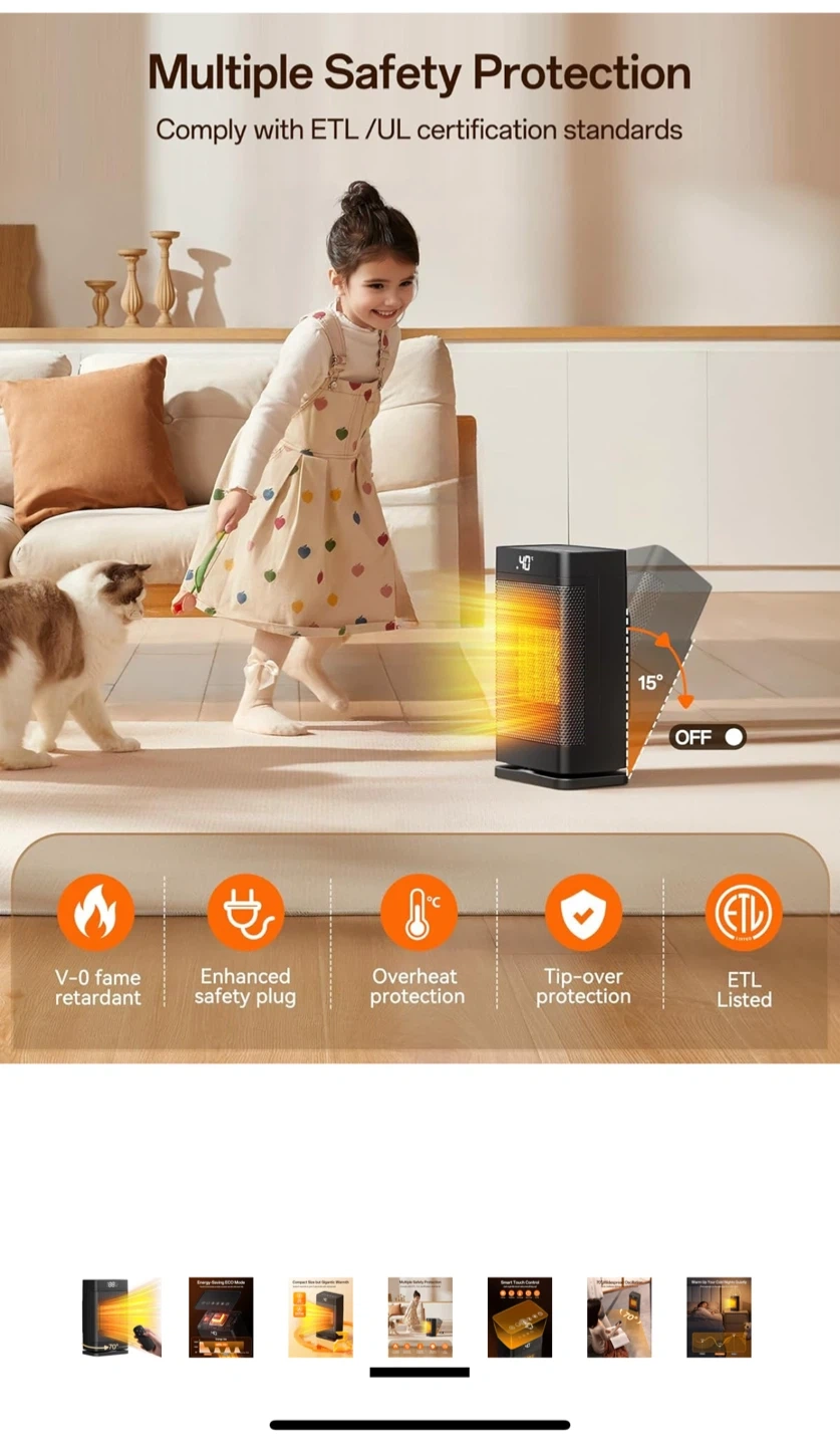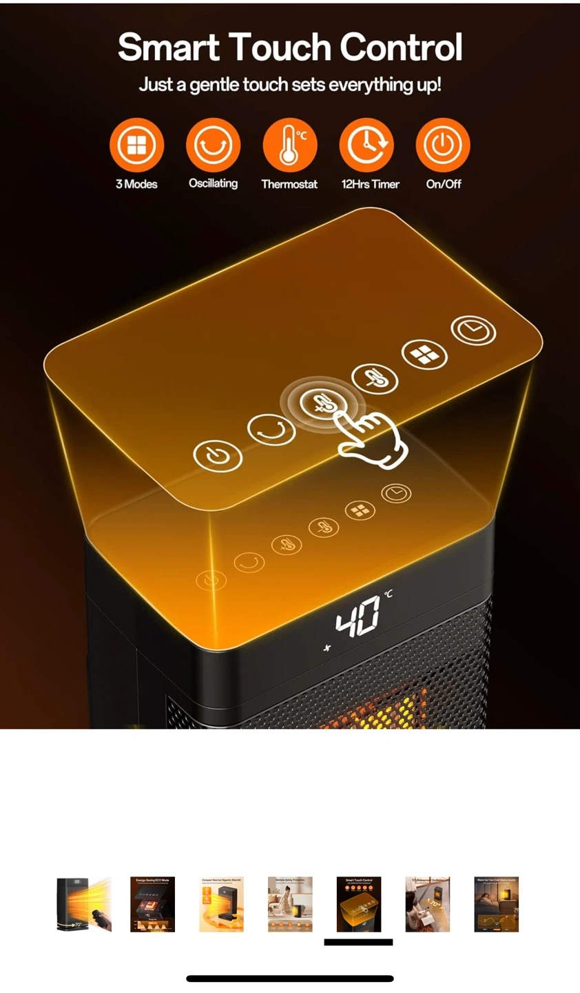 Stay warm and cozy with this compact electric space heater! It features instant heating in just 2 seconds with advanced PTC ceramic technology. Enjoy warmth quietly with noise levels under 45dB. It also has multiple safety protections and smart touch controls for easy operation. Perfect for those chilly Canadian nights!