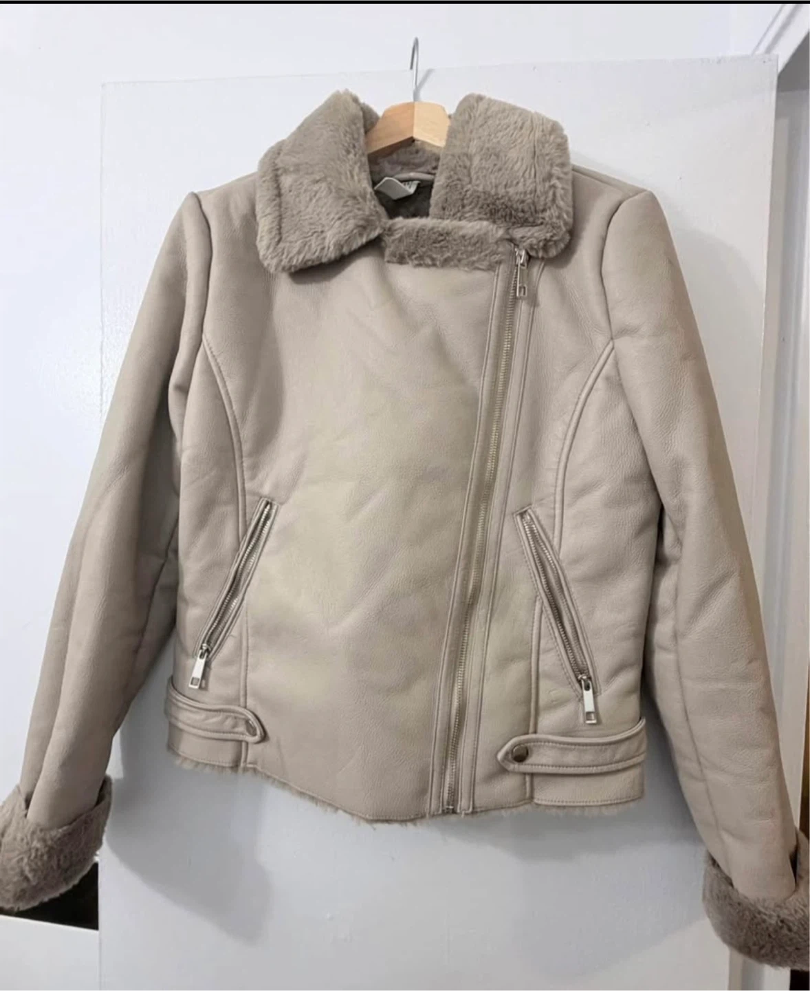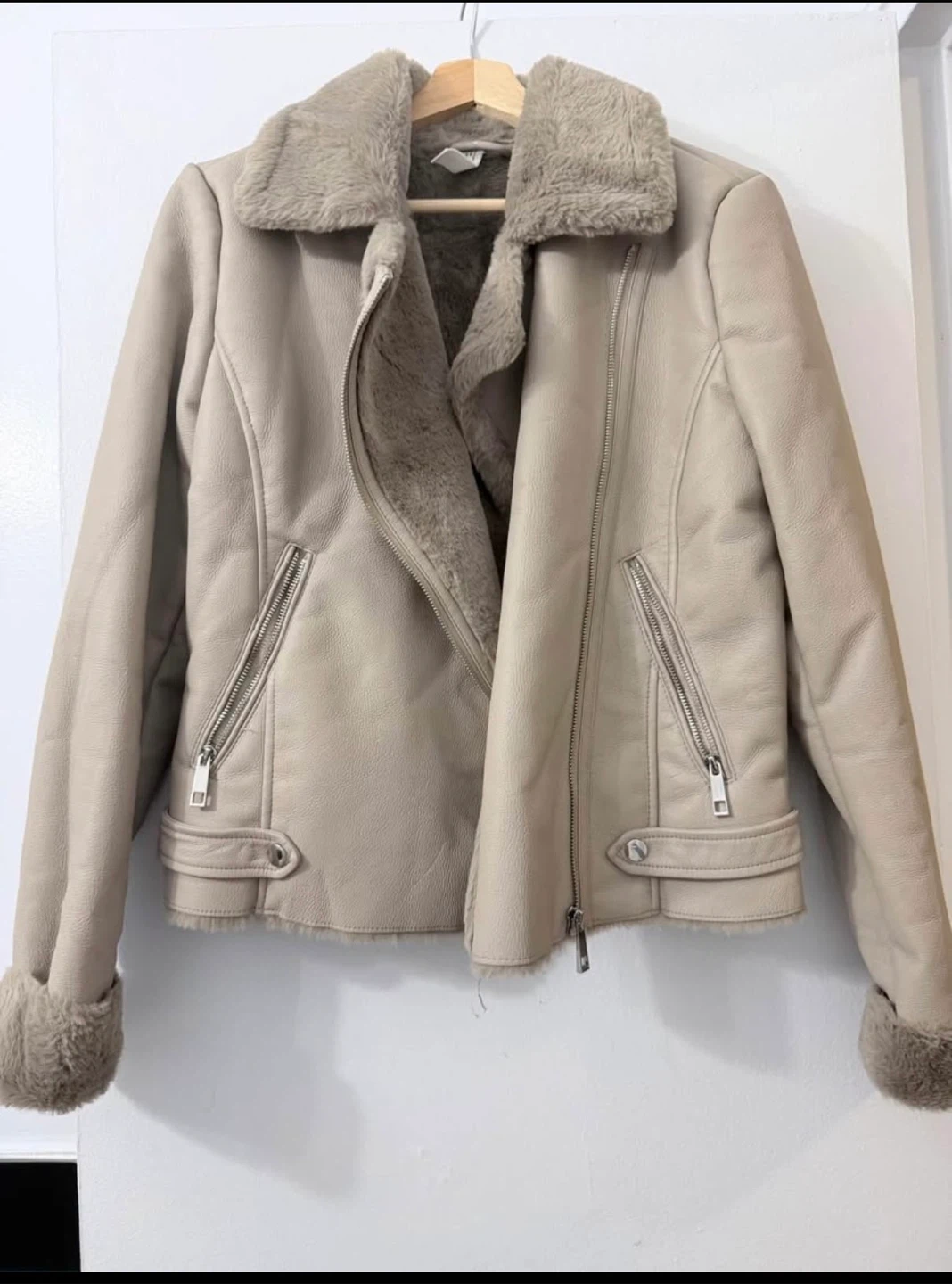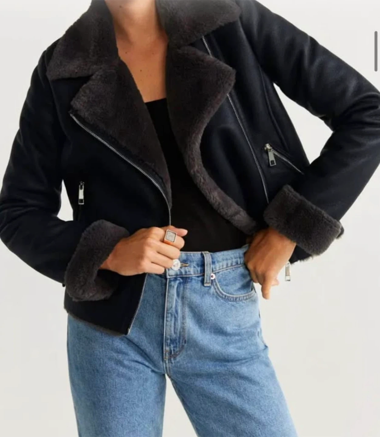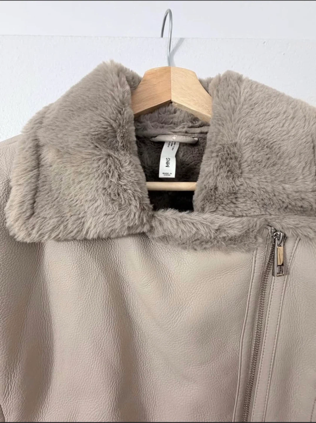 70This is a Mango faux shearling biker jacket! It comes in a stylish design with a cozy faux shearling lining. Used only once