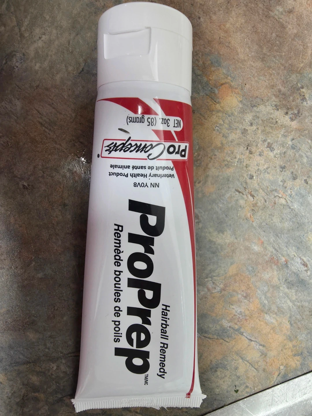 1000+Selling a tube of Pro Concepts ProPrep Hairball Remedy for cats. It's a veterinary health product designed to help with hairballs. The tube contains 85 grams (3oz).