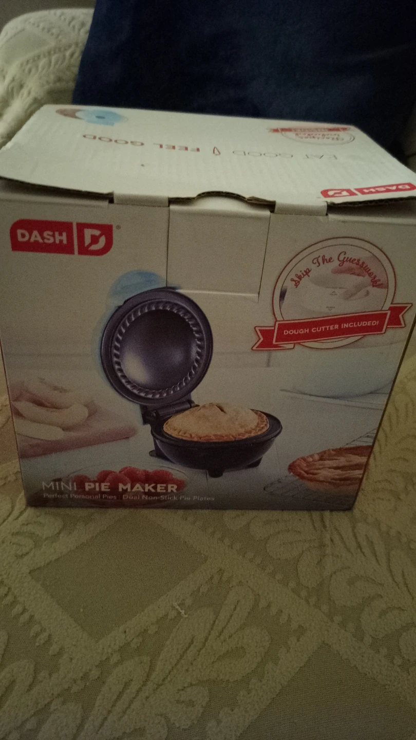 I'm selling a brand new DASH Mini Pie Maker! It comes in its original box and includes recipes. Perfect for making personal pies with dual non-stick pie plates. A dough cutter is also included to skip the guesswork!