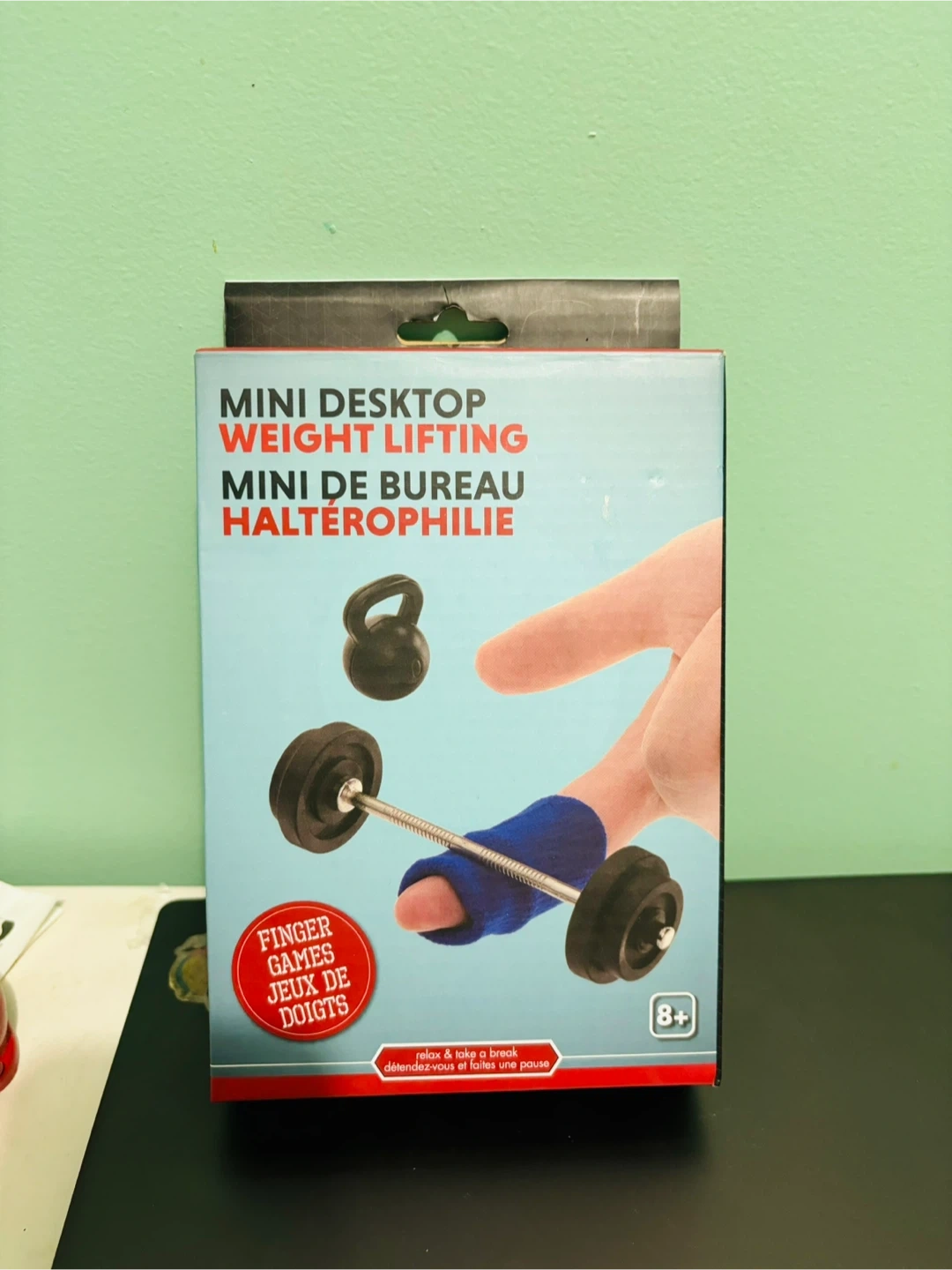 Selling a finger weight lifting set. It's a fun little toy to keep on your desk or to gift!